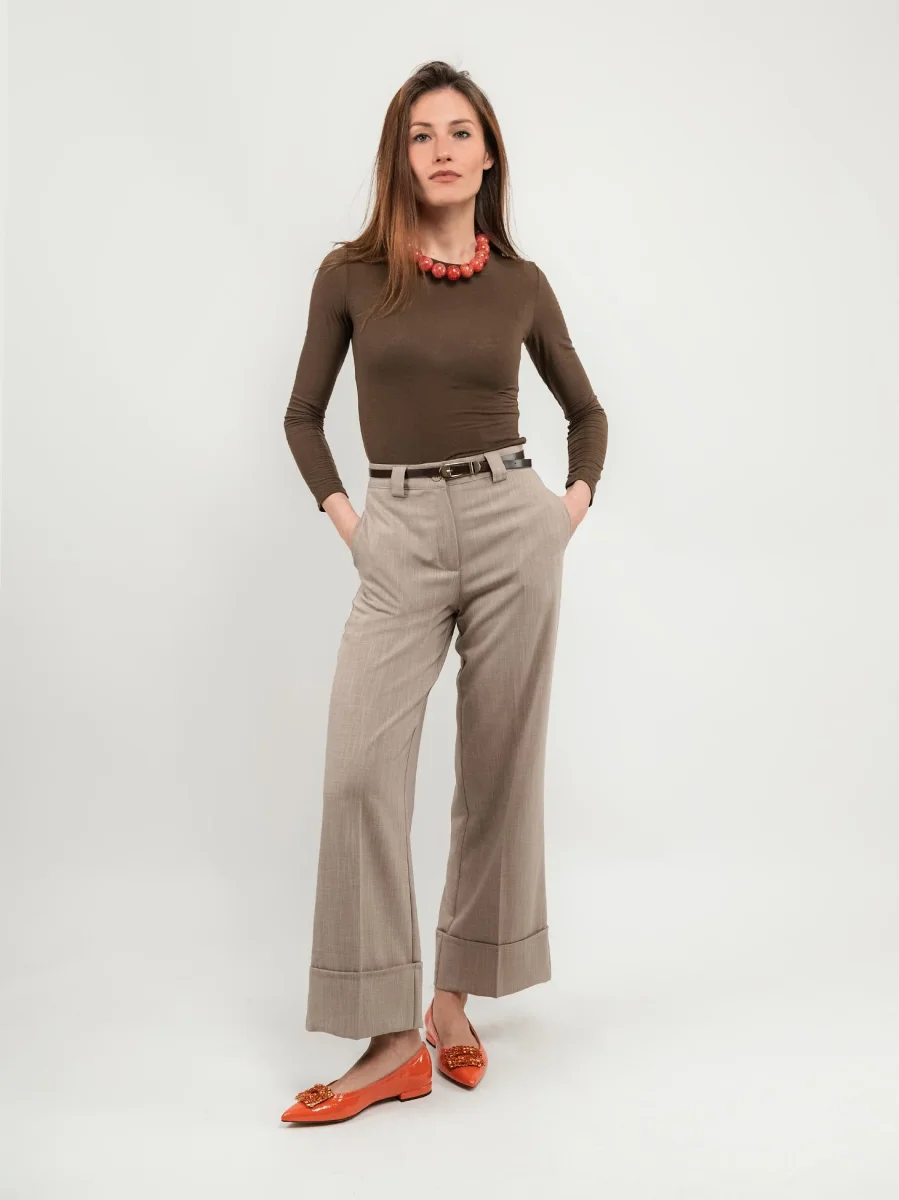 PANTALONE A PALAZZO BEIGE CON MAXI RISVOLTO