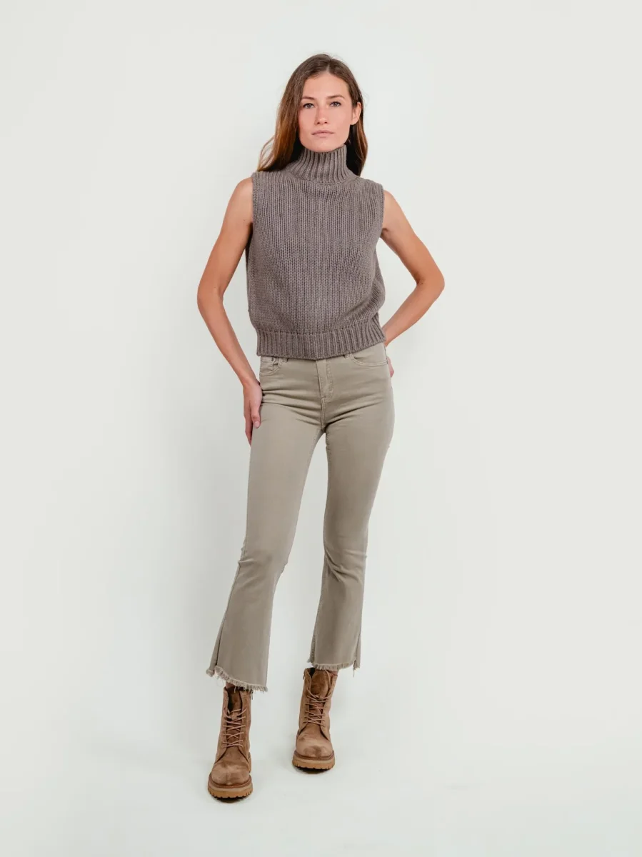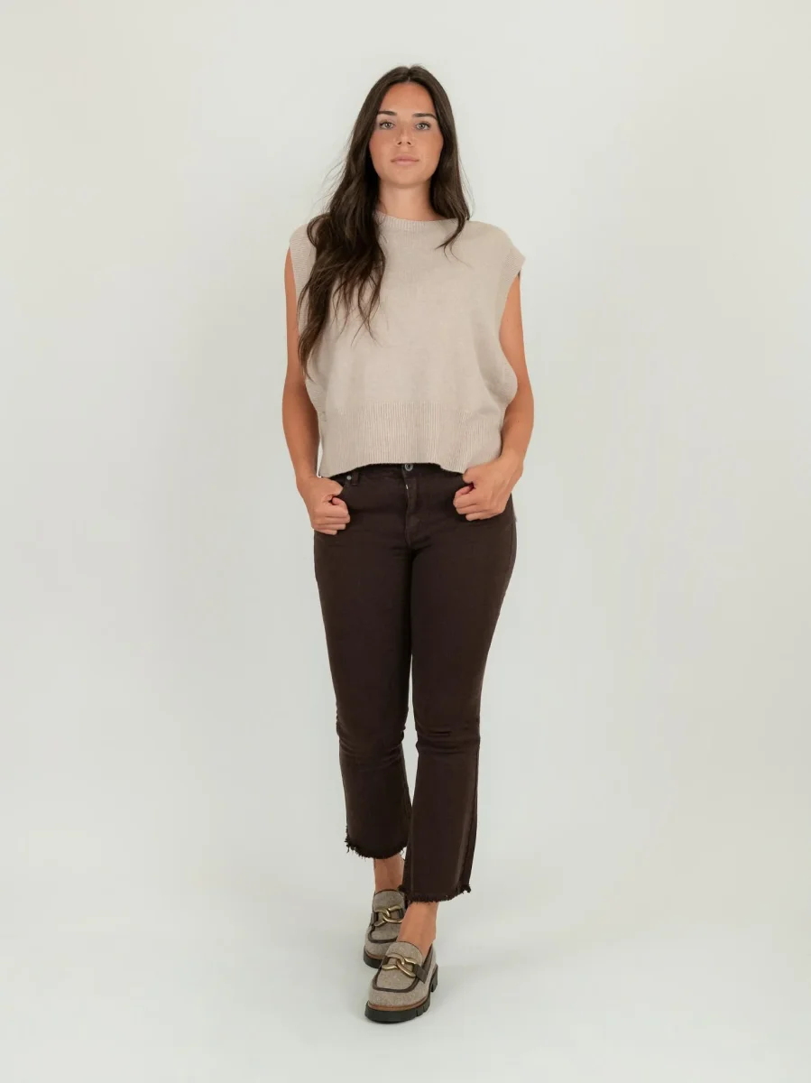 PANTALONE 5 TASCHE A TROMBETTA SFRANGIATO BEIGE