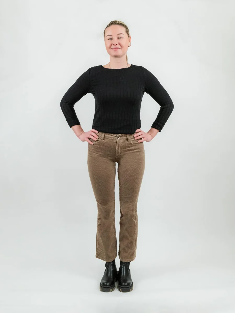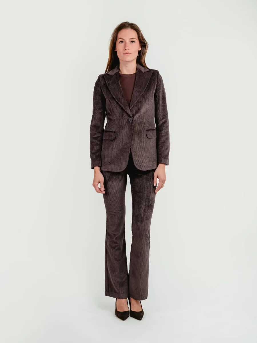 PANTALONE A ZAMPA IN VELLUTO A COSTE TESTA MORO