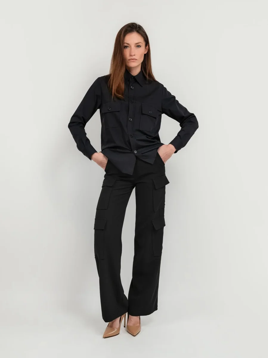 PANTALONE CON MAXI RISVOLTO IN TESSUTO NERO