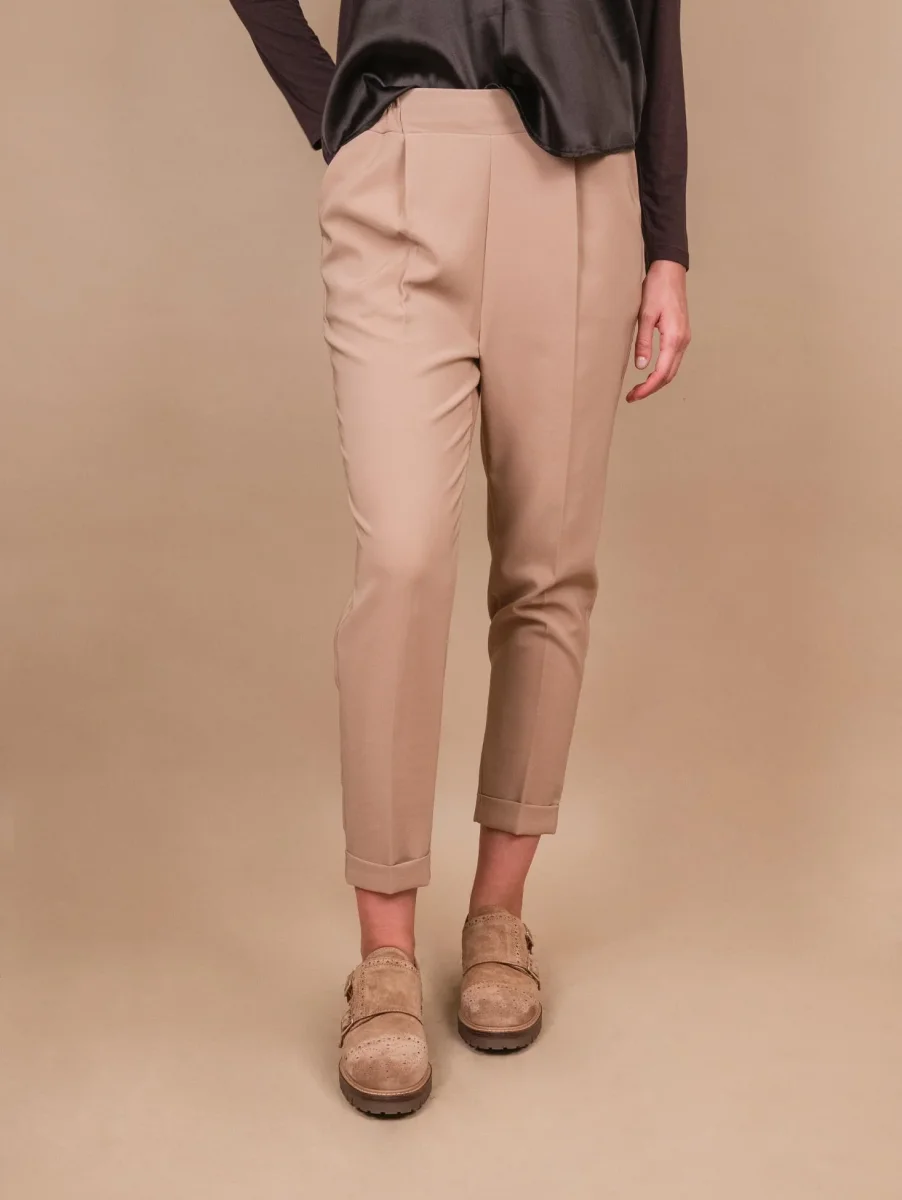 PANTALONE CON PINCES IN TESSUTO TECNICO BEIGE