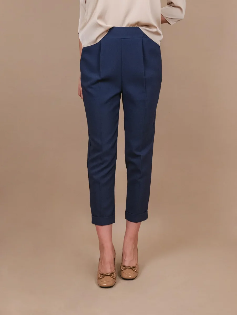 PANTALONE CON PINCES IN TESSUTO TECNICO BLU