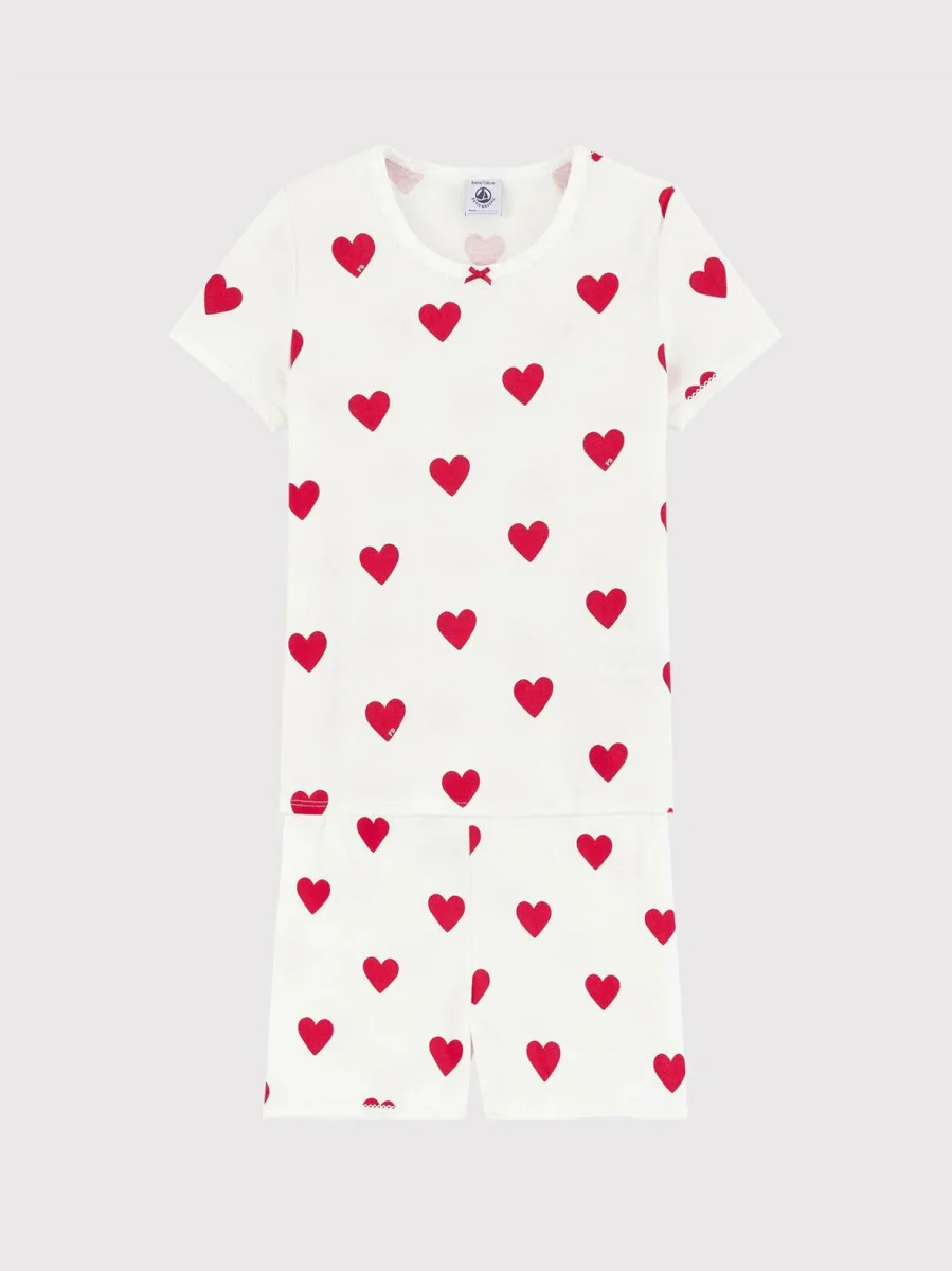 PIGIAMA CORTO BAMBINA IN COTONE MOTIVO CUORE