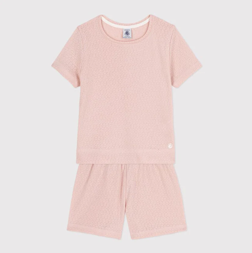 PIGIAMA CORTO BAMBINA IN COTONE TRAFORATO TINTA UNITA