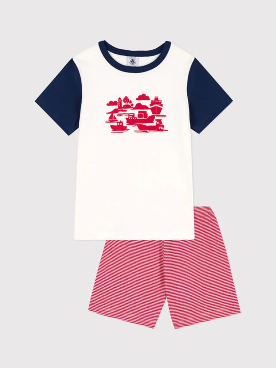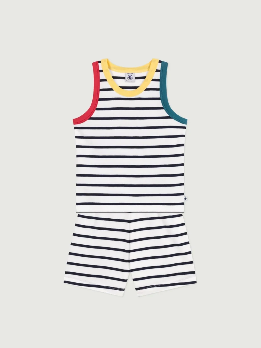 PIGIAMA CORTO MARINIÈRE BAMBINO IN COTONE