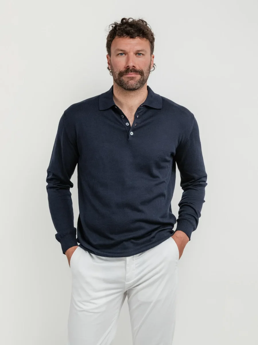 Polo a maniche lunghe in maglina di cotone blu notte