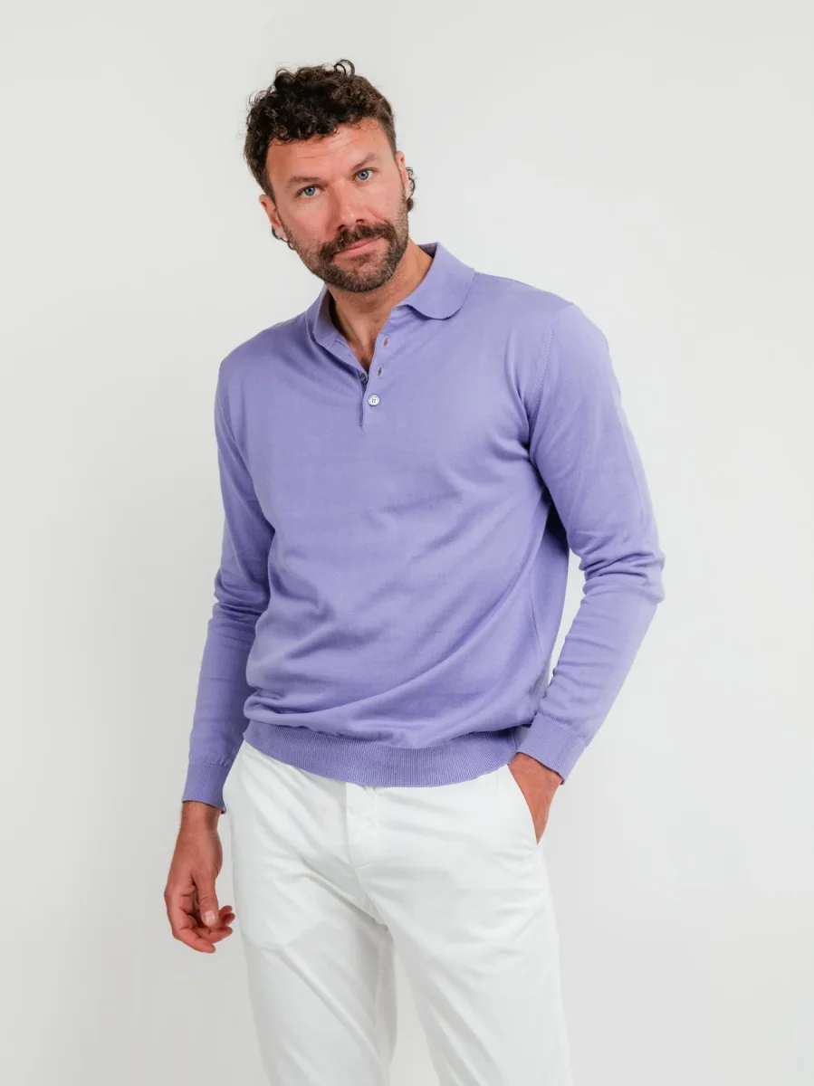 Polo a maniche lunghe in maglina di cotone glicine