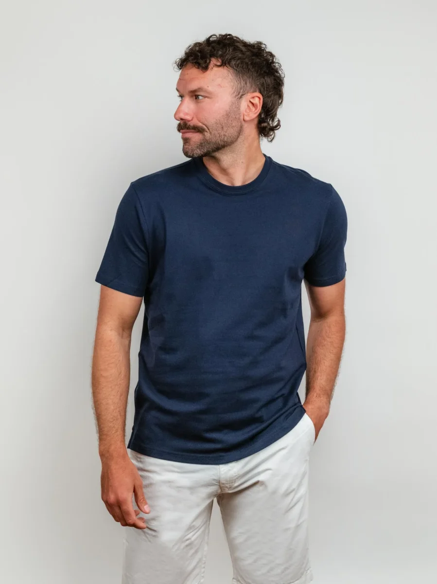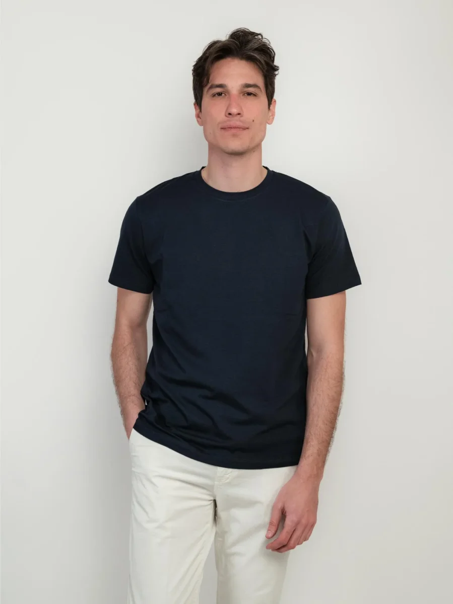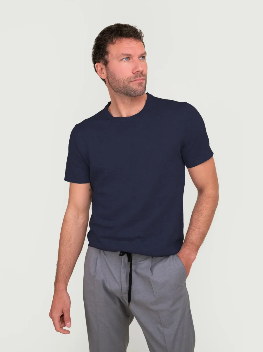 T-SHIRT GIROCOLLO IN MAGLIA DI COTONE BLU NAVY