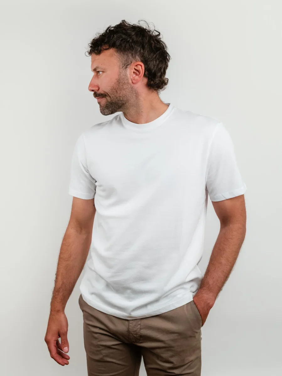 T-SHIRT GIROCOLLO IN COTONE PIQUET BIANCA