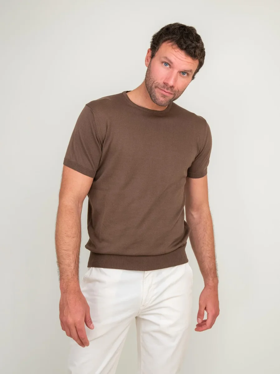 T-SHIRT GIROCOLLO IN COTONE COLOR TABACCO