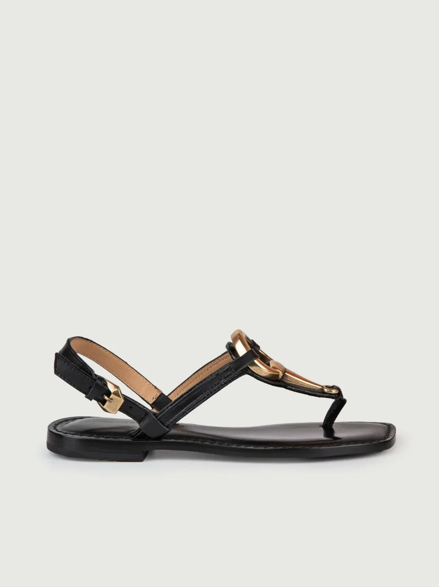 SANDALO INFRADITO IN PELLE NERO CON DETTAGLIO ORO