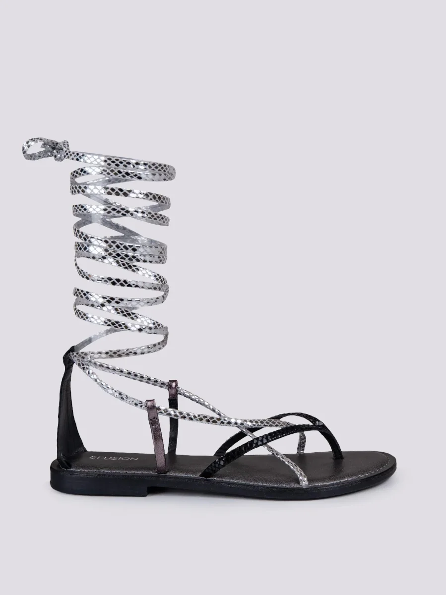 Sandalo in pelle stampata multicolor con lacci modello schiava