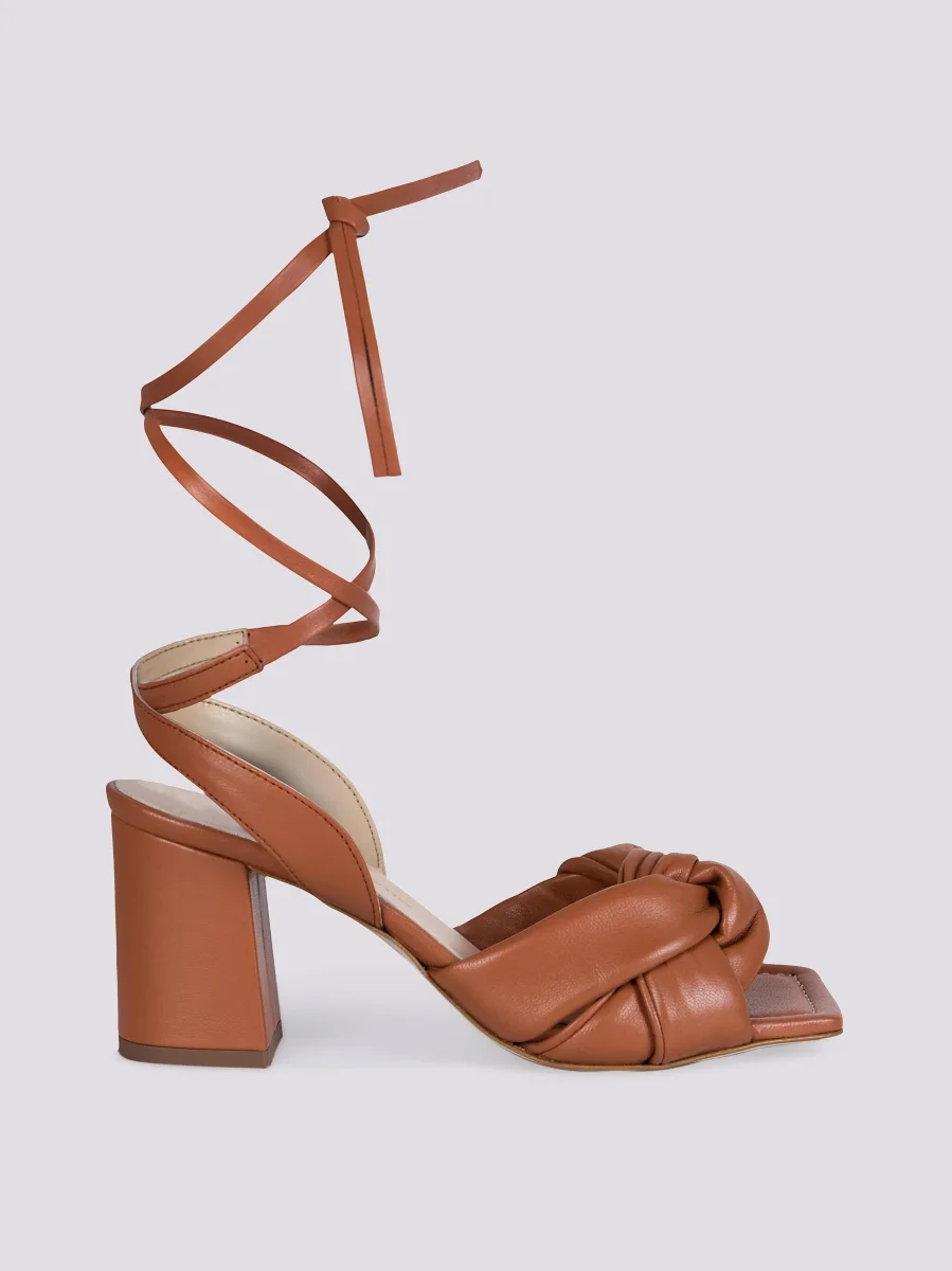SANDALO CON TACCO QUADRATO E INTRECCIO CUOIO