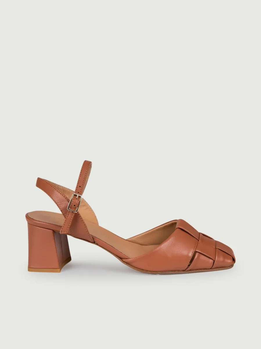 SANDALO CON TACCO IN PELLE INTRECCIATA