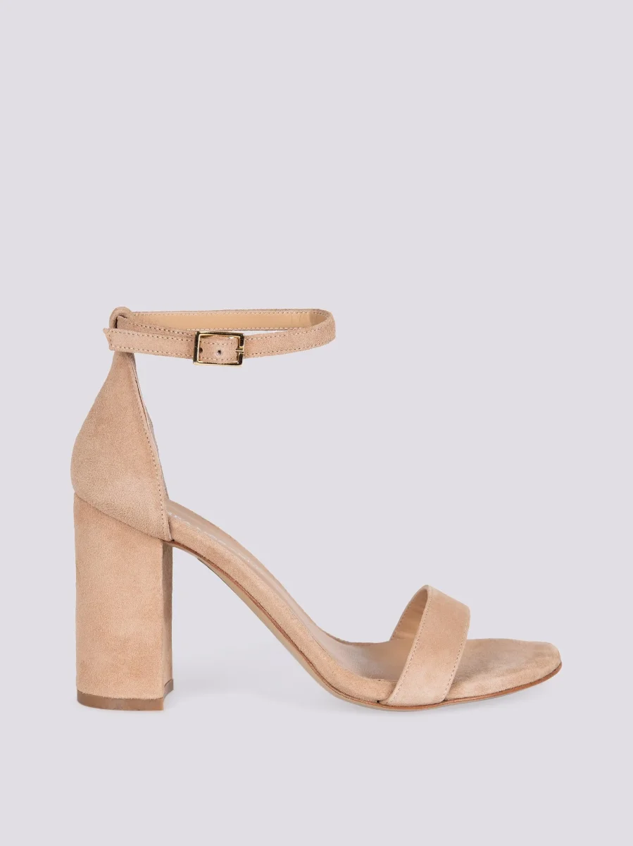 SANDALO CON TACCO SPESSO IN CAMOSCIO