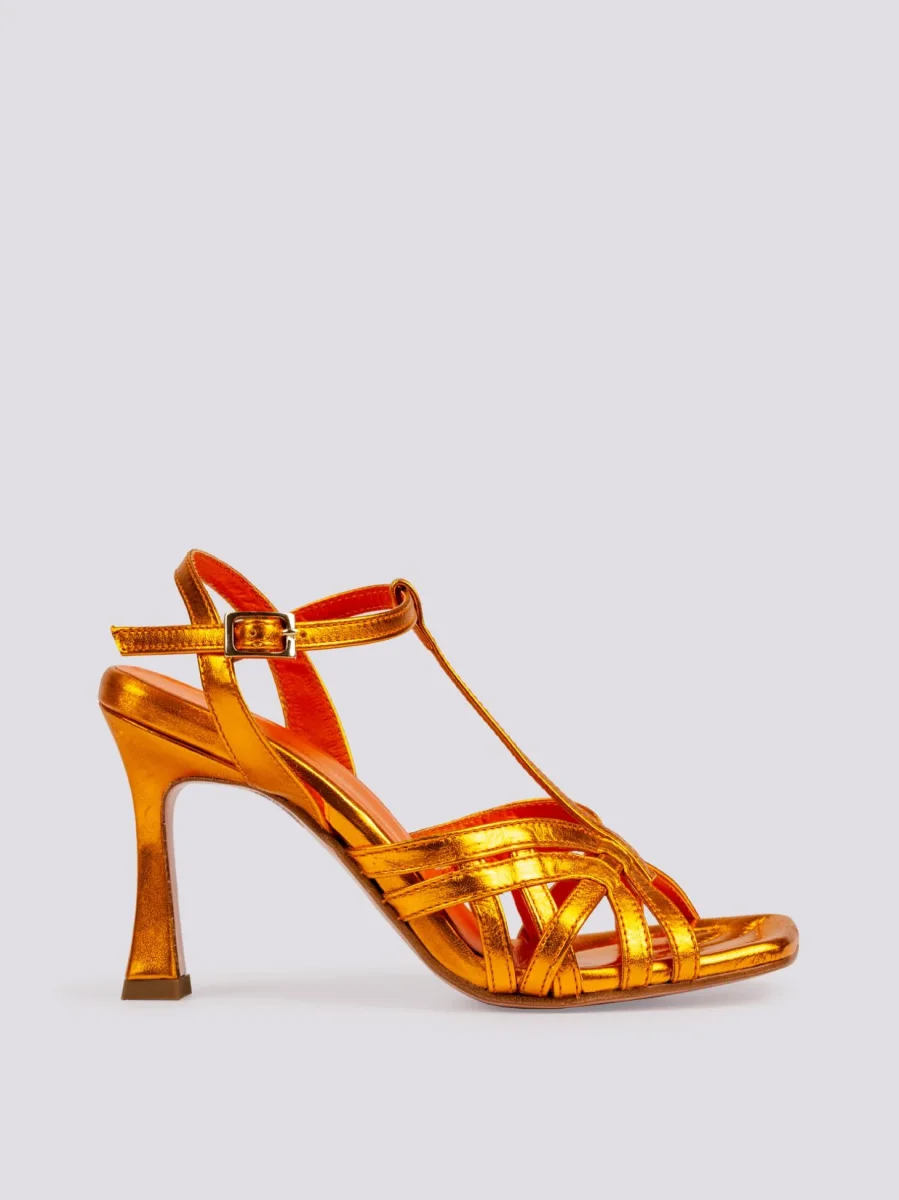 SANDALO CON TACCO QUADRATO IN NAPLAK ARANCIO