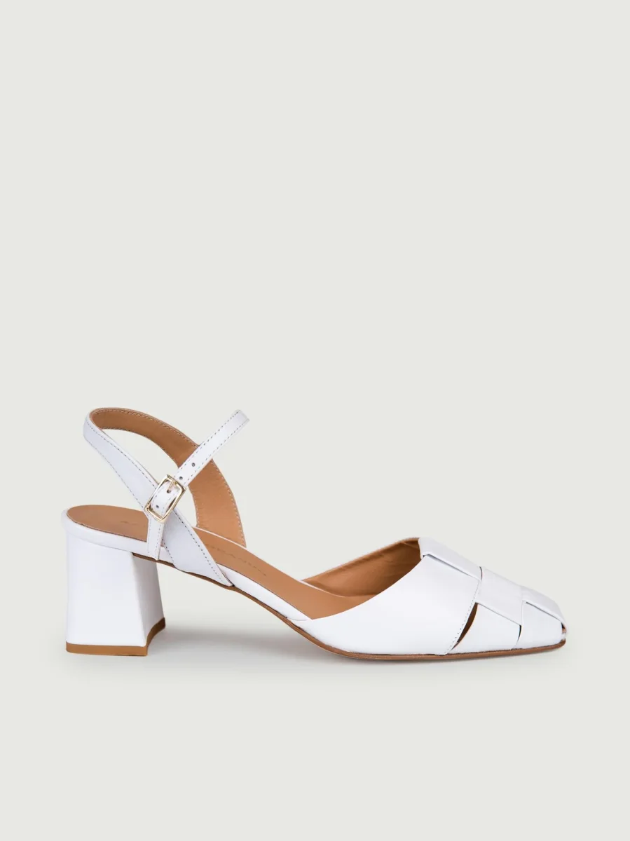 SANDALO CON TACCO QUADRATO E INTRECCIO BIANCO
