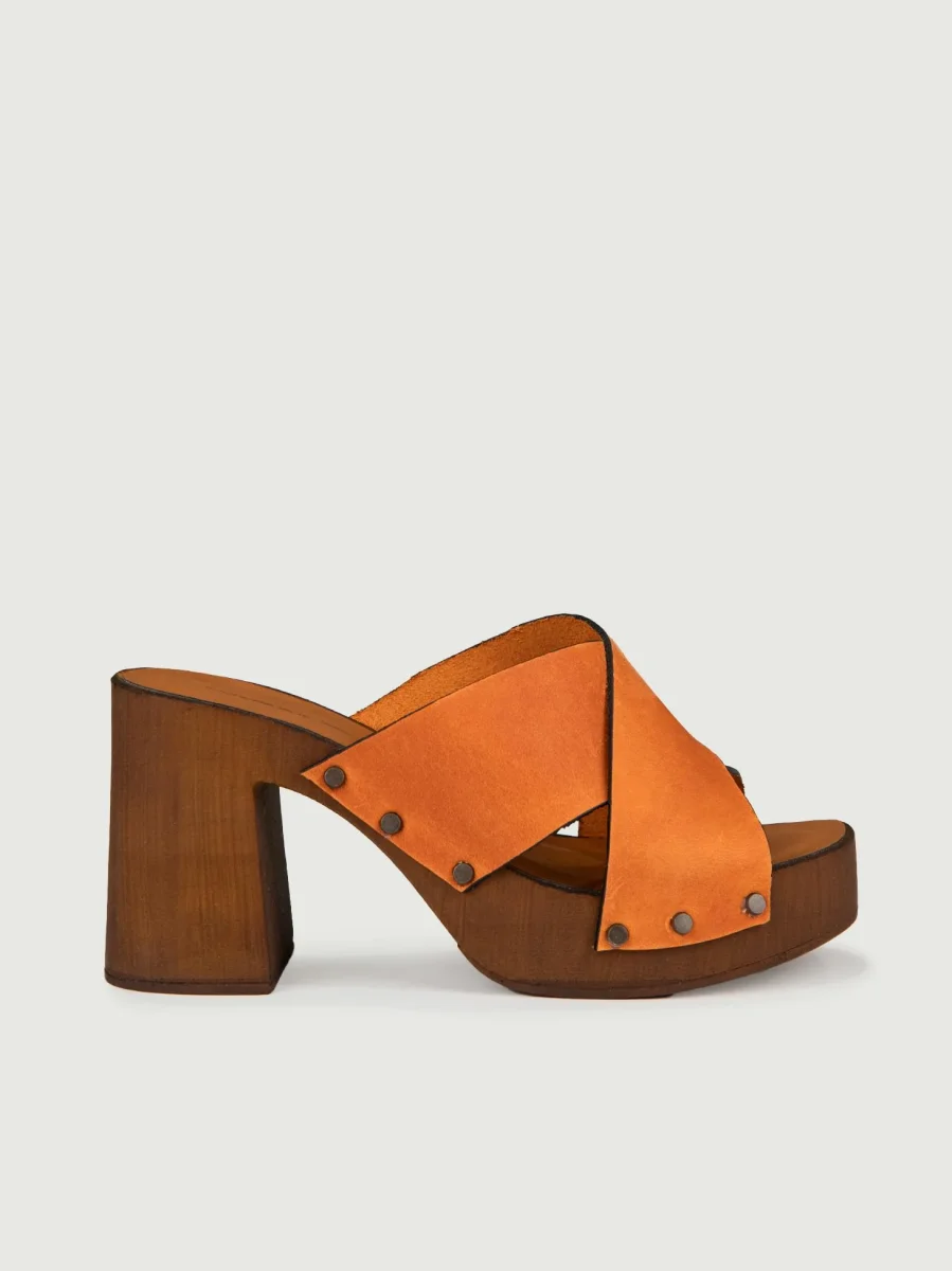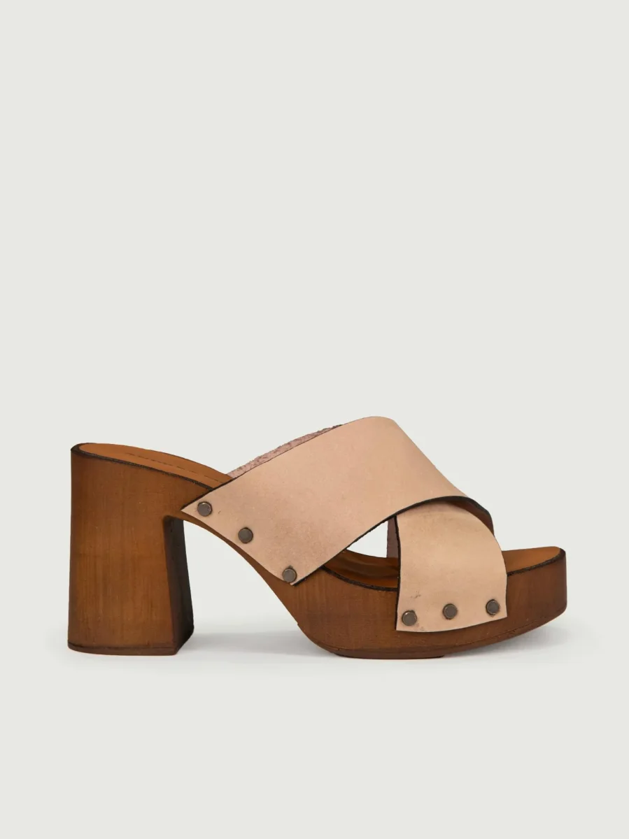 ZOCCOLO IN PELLE CUOIO CON MORSETTO