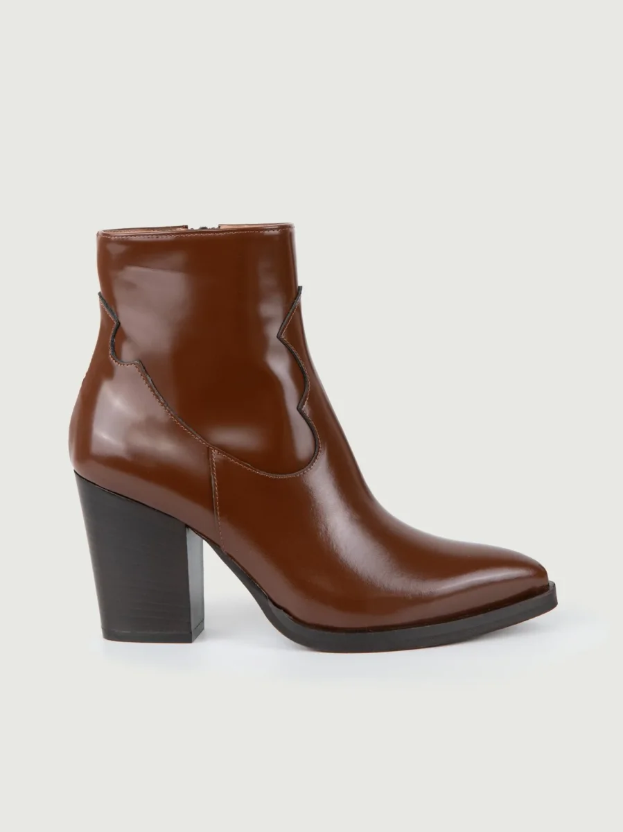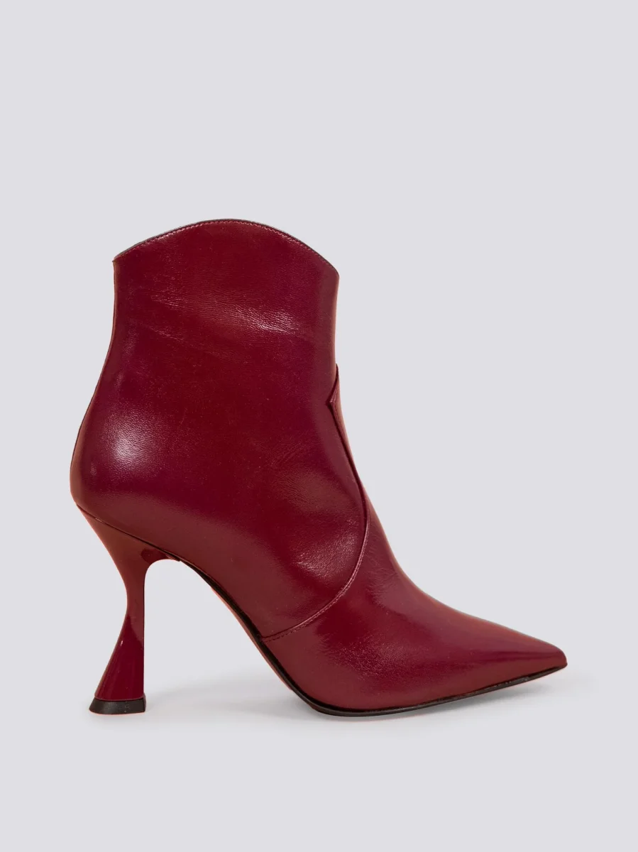 TRONCHETTO TEXANO CON TACCO A ROCCHETTO IN VERNICE BORDEAUX