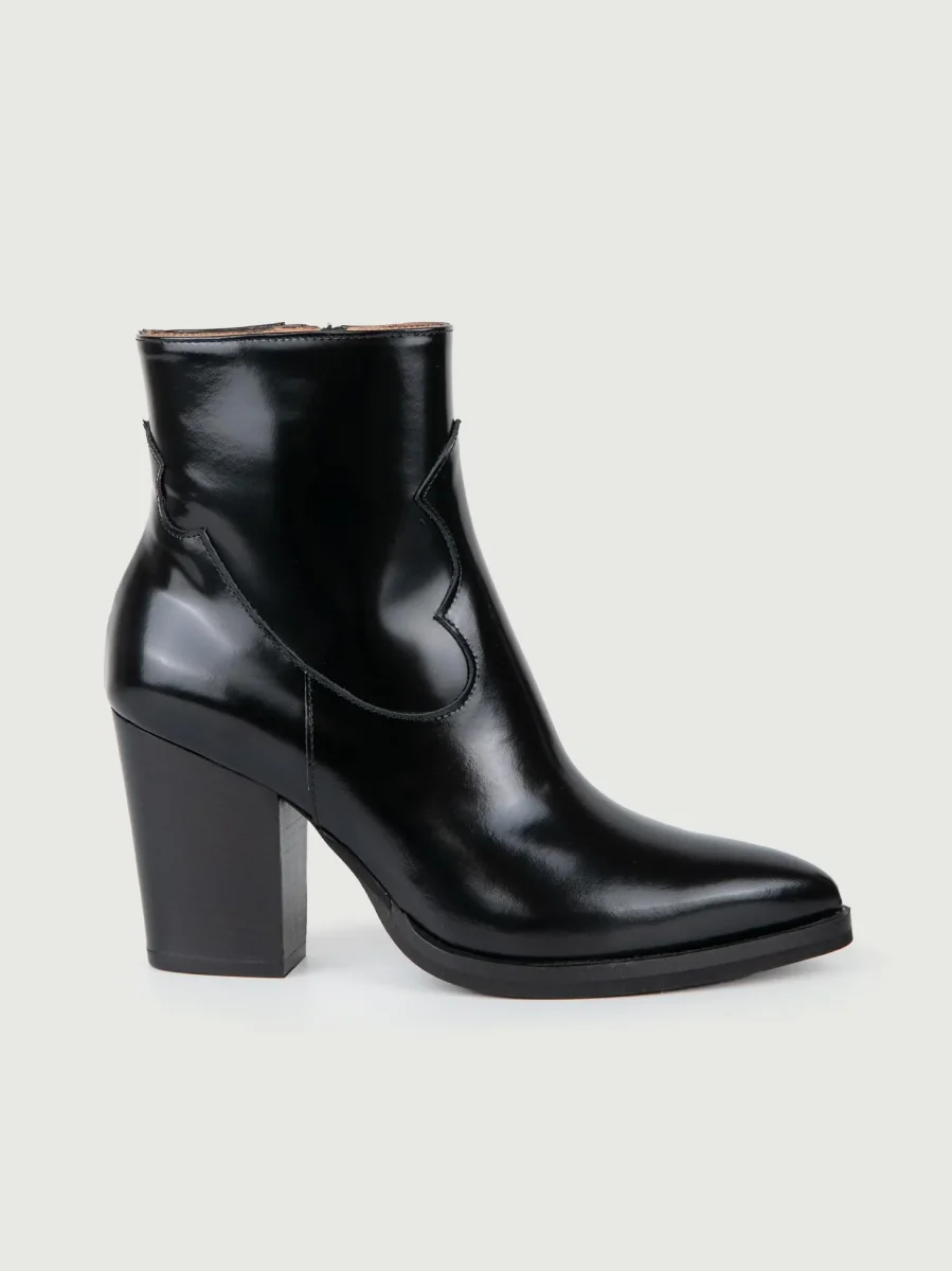 TRONCHETTO TEXANO CON TACCO A ROCCHETTO IN VERNICE NERA