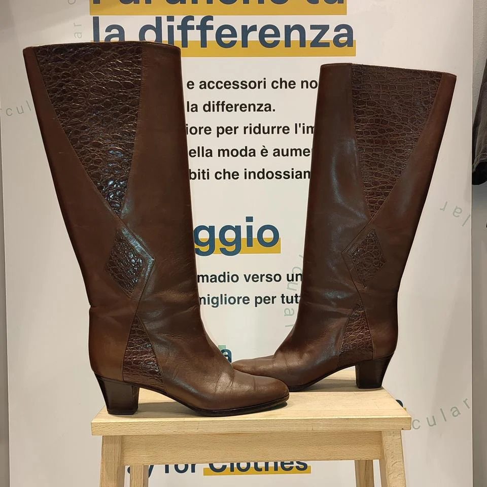 Eleganza metropolitana: stivali alti con dettagli ALV by Alviero Martini, perfetti per look sofisticati day-to-night.