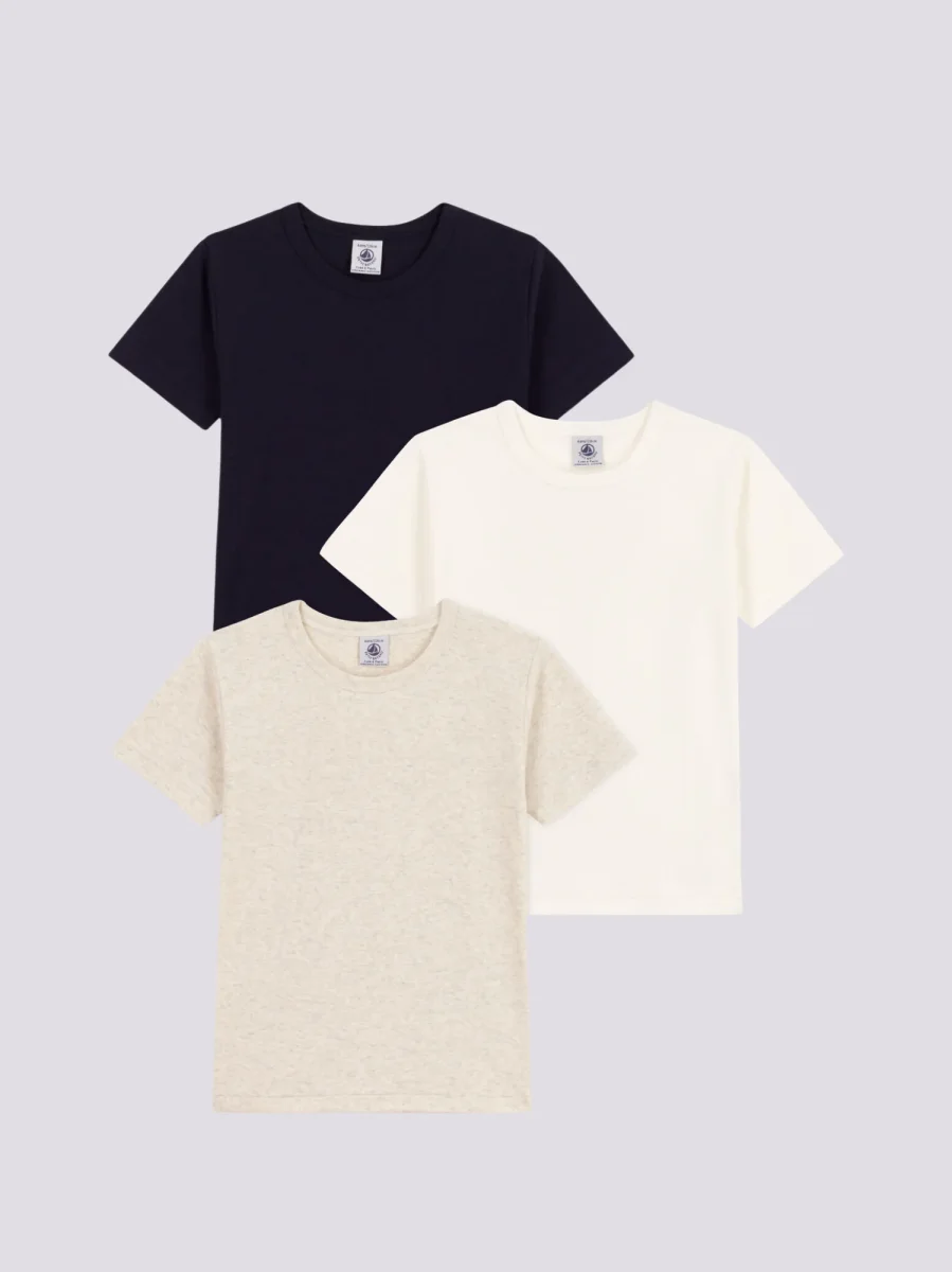 SET DI 3 T-SHIRT BAMBINO A MANICHE CORTE IN COTONE TINTA UNITA