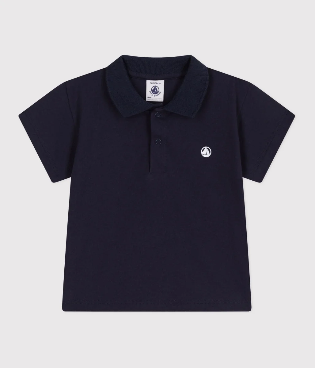 POLO BLU BEBÈ IN COTONE A MANICA CORTA