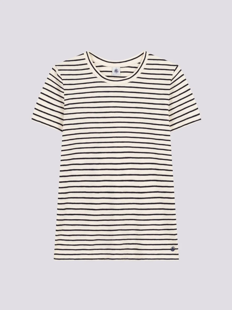 T-SHIRT REGULAR GIROCOLLO IN COTONE RIGATO DONNA