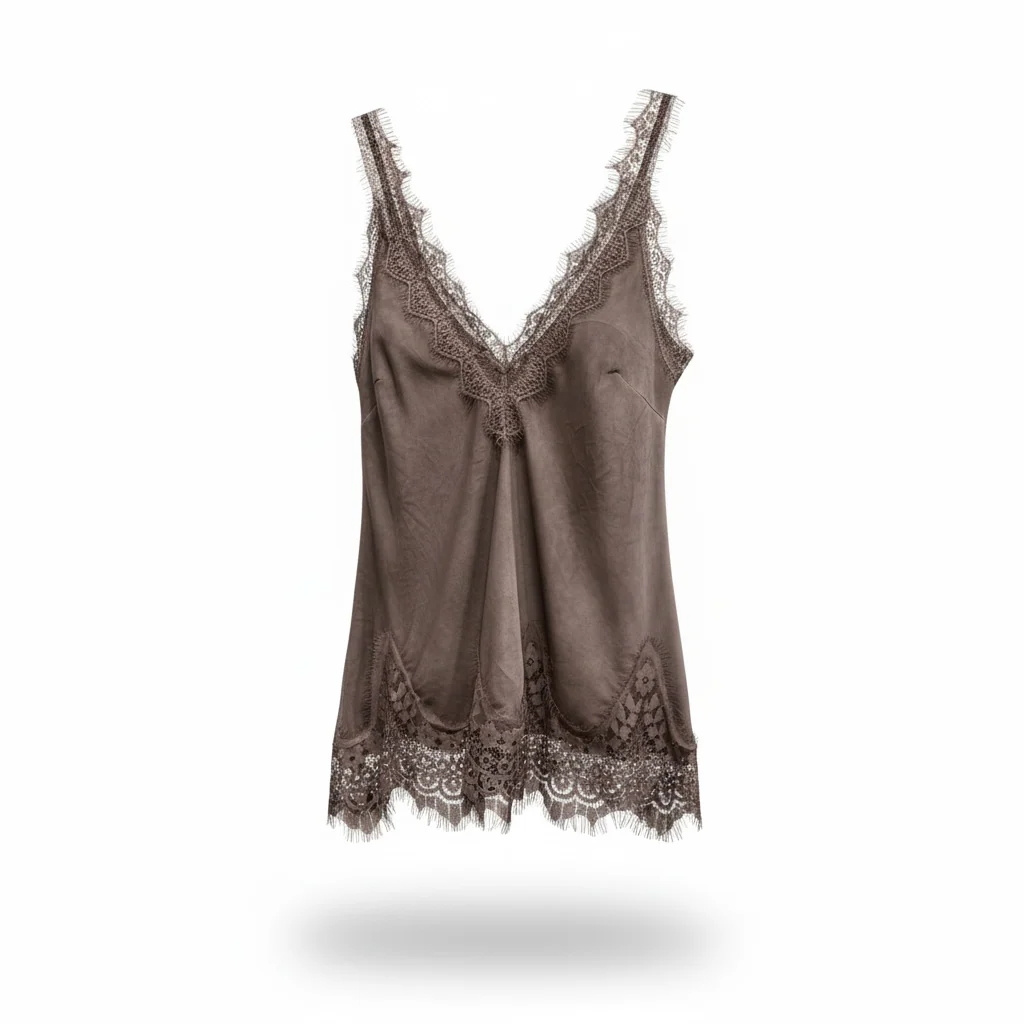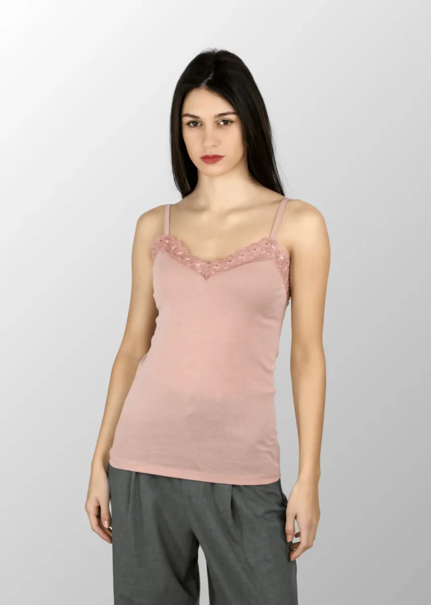 Top donna spalla stretta Irina con macramé in Cotone Seta