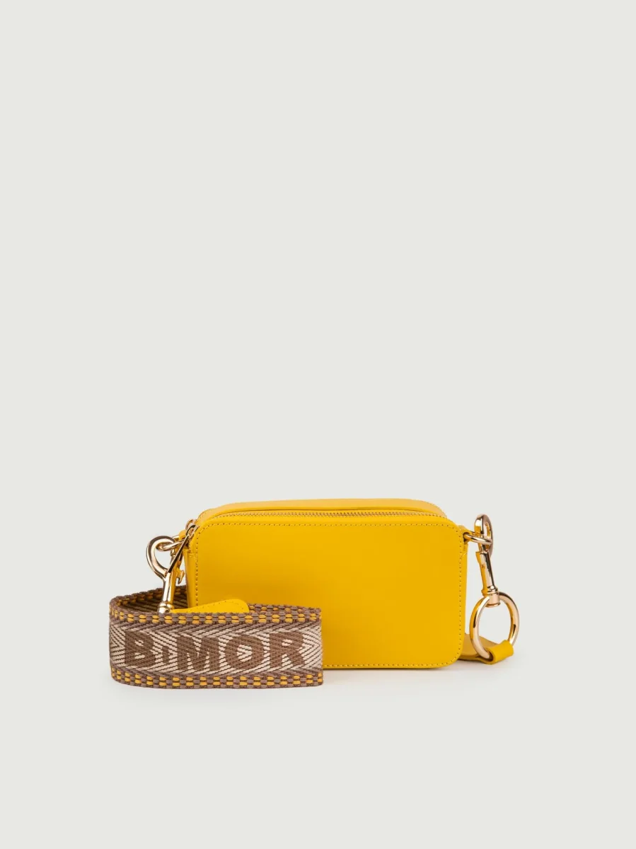 BORSA A TRACOLLA IN PELLE GIALLA CON DOPPIA TASCA