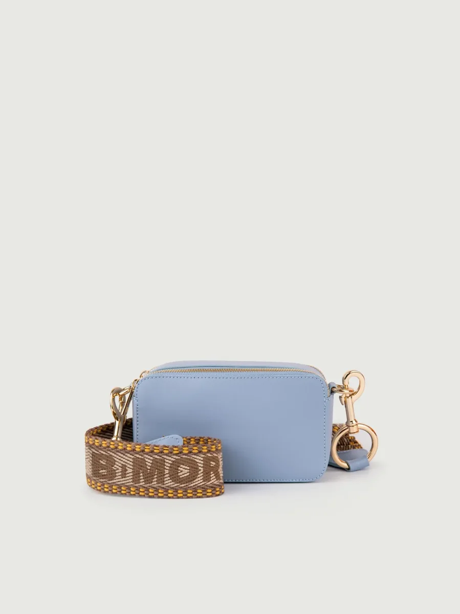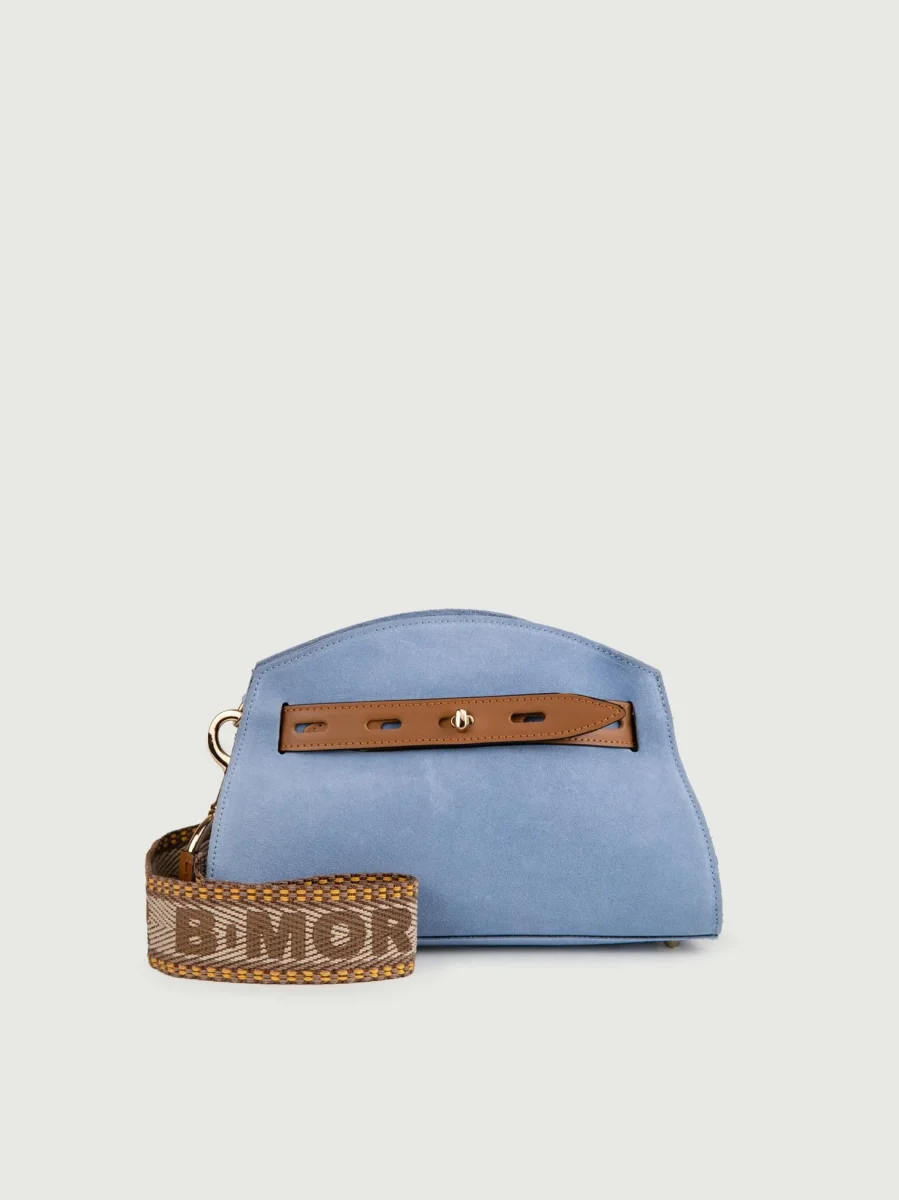 BORSA A TRACOLLA IN CAMOSCIO AZZURRO CON INSERTI IN PELLE CUOIO “SOPH”