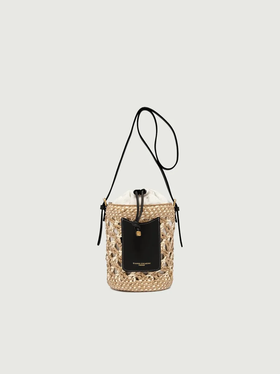 SECCHIELLO SAONA SMALL IN PAGLIA CON DETTAGLI IN PELLE NERA