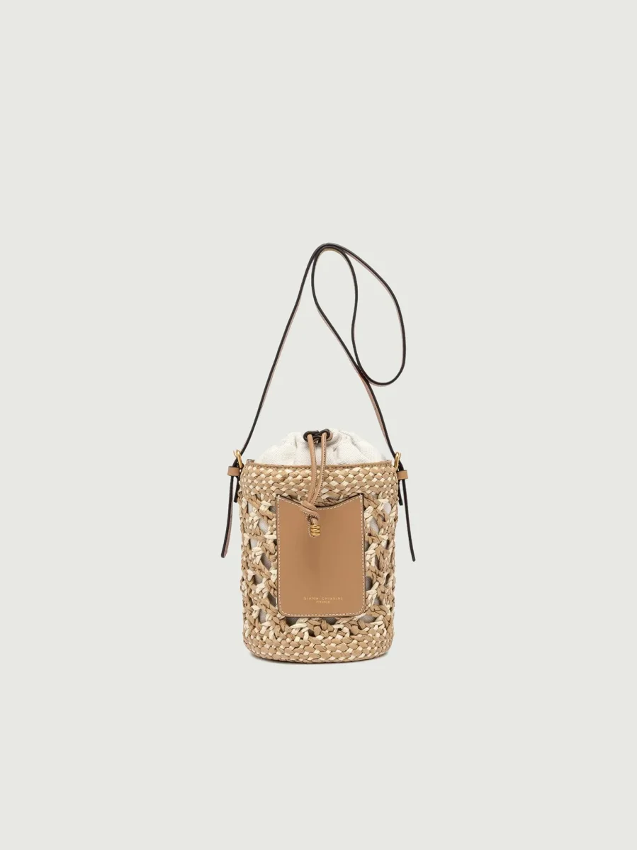 SECCHIELLO SAONA SMALL IN PAGLIA CON DETTAGLI IN PELLE CUOIO