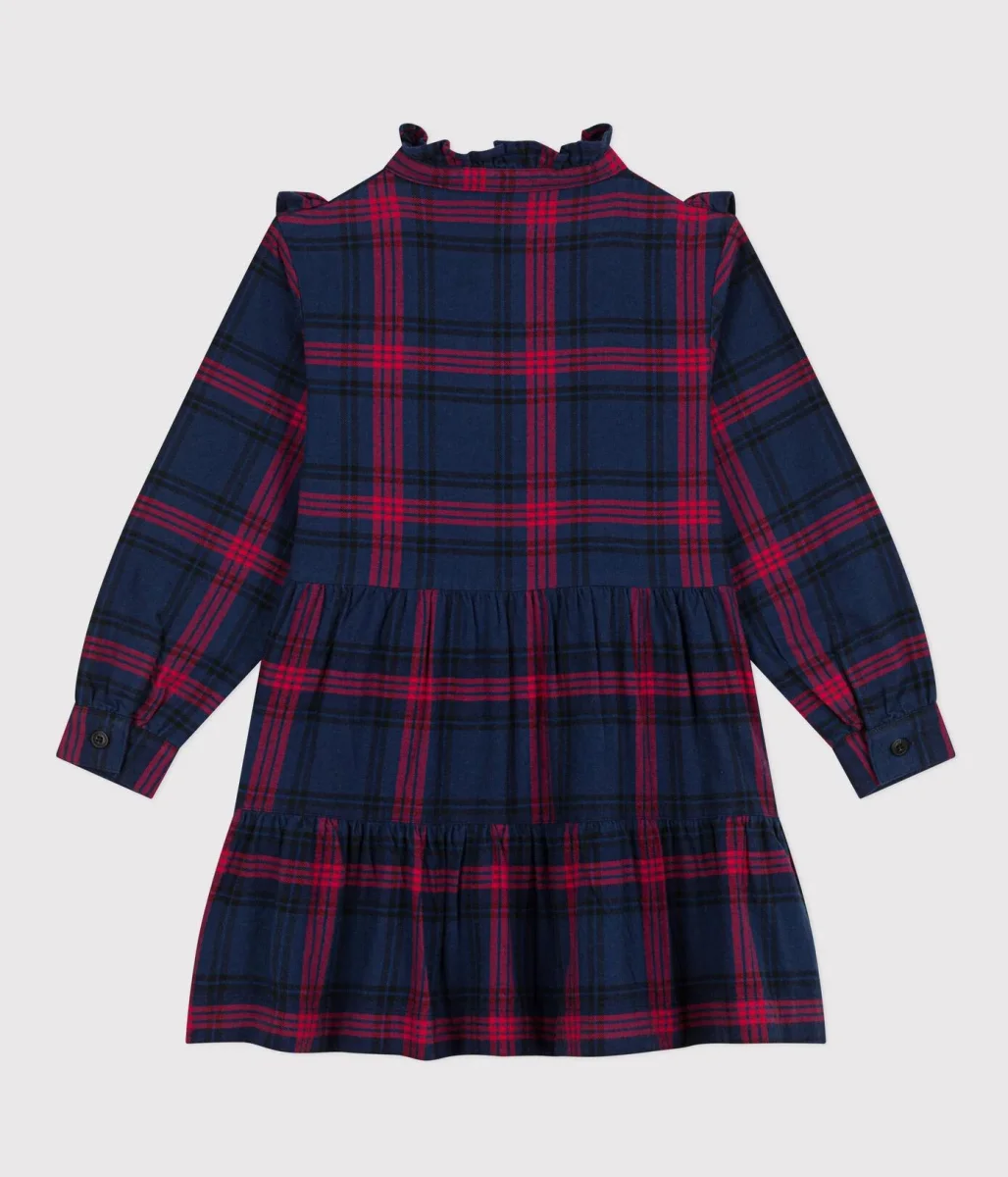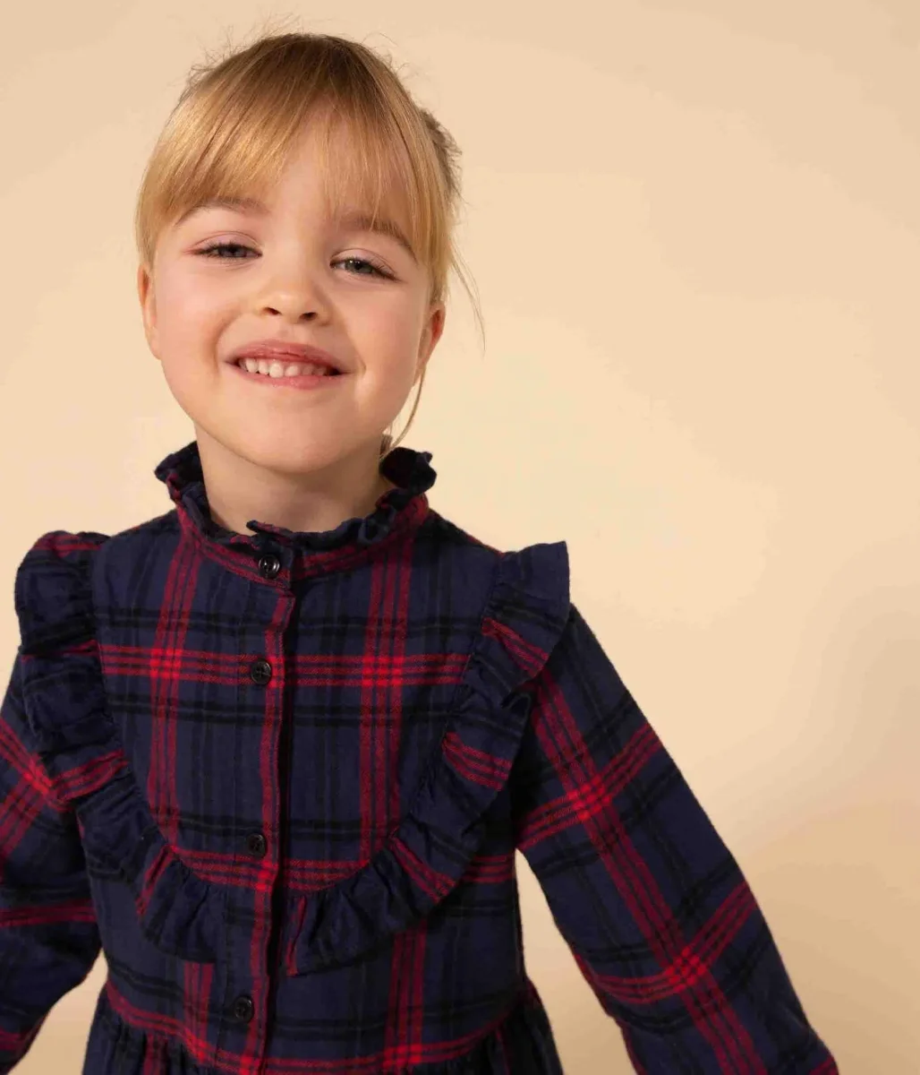 Abito a maniche lunghe a quadri in flanella di cotone, un materiale morbido, soffice e confortevole.