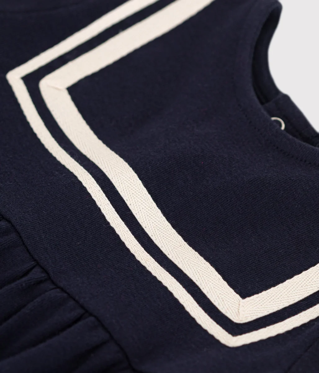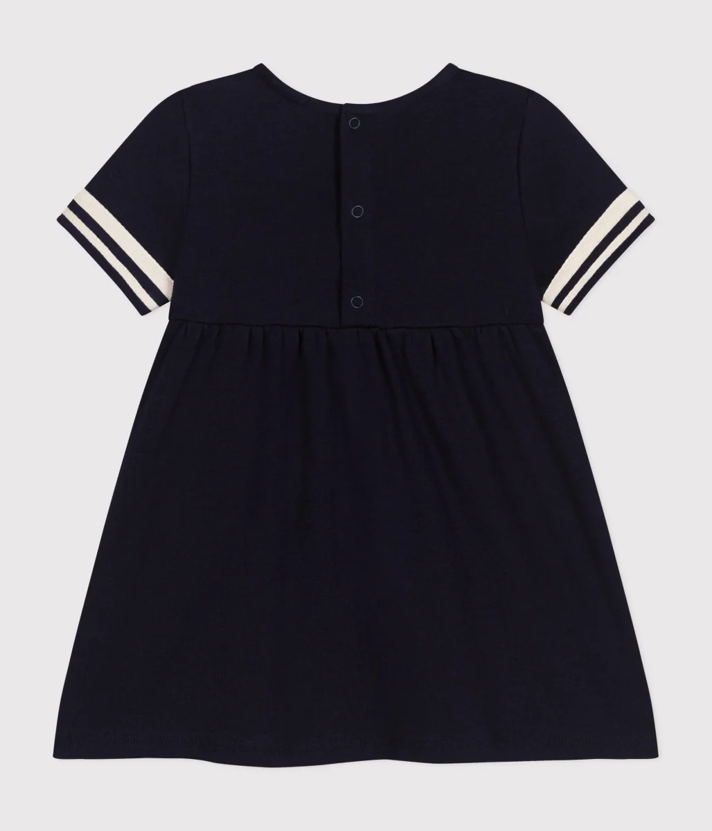 Abito tinta unita alla marinara con maniche corte e gonna leggermente svasata.