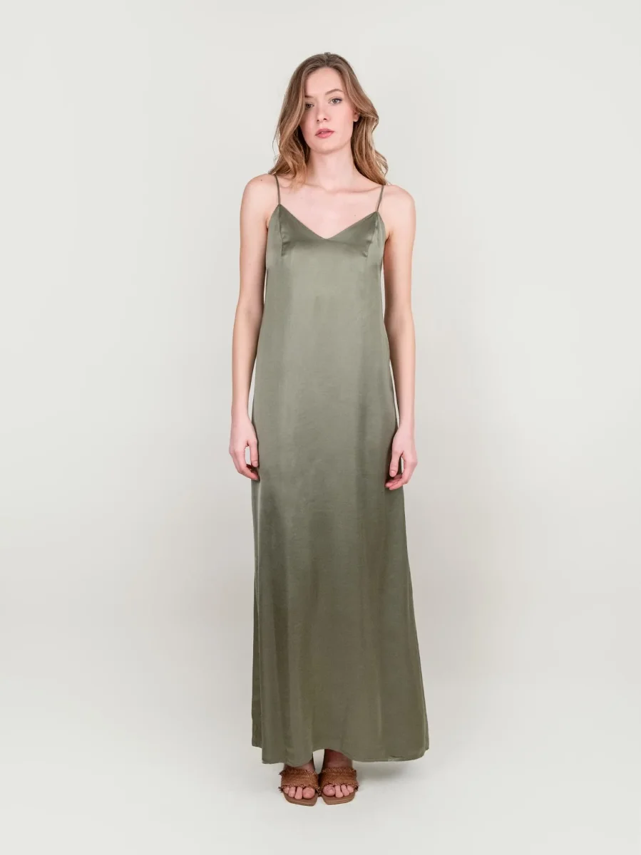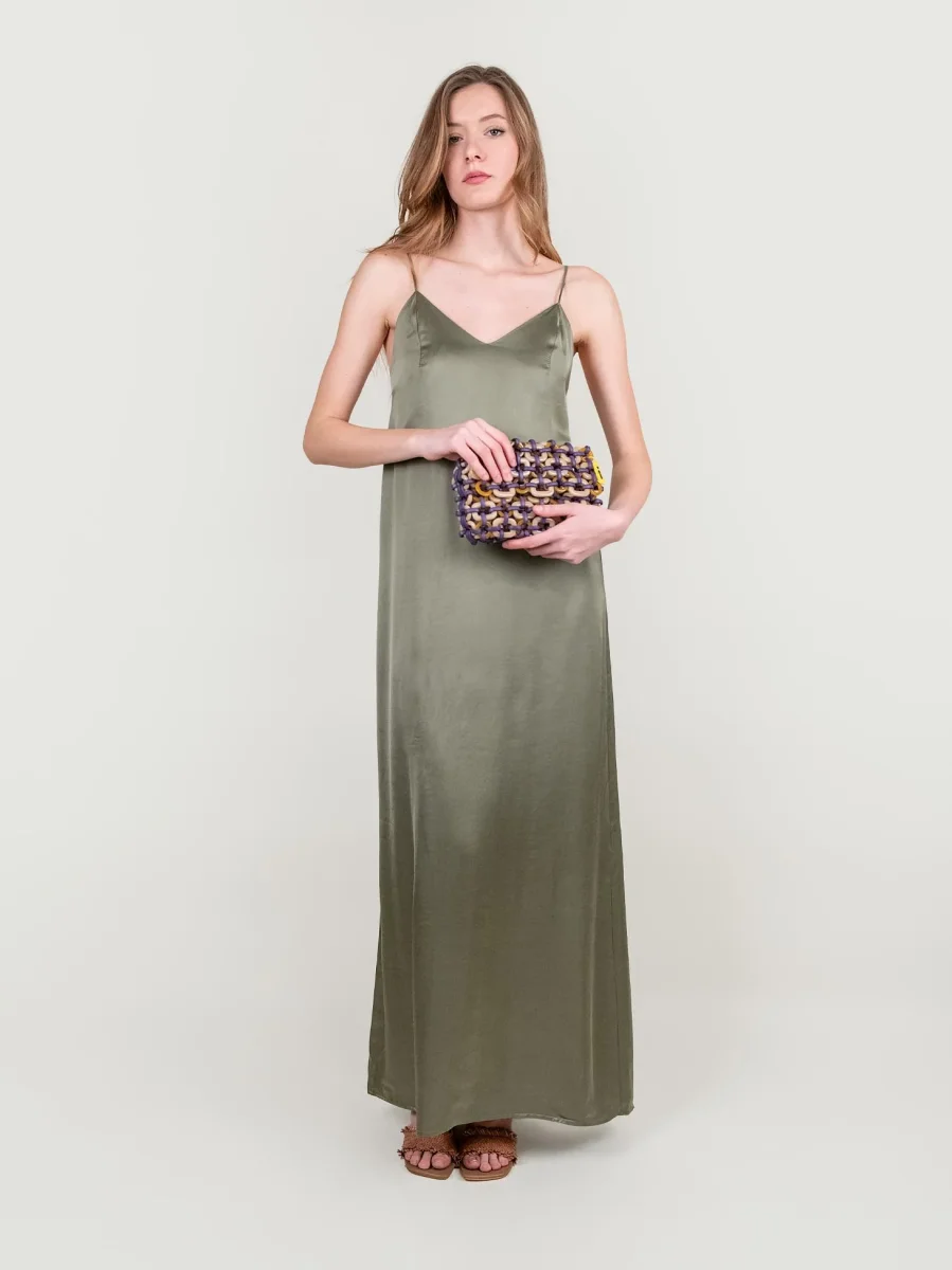 ABITO LUNGO IN VISCOSA VERDE MILITARE