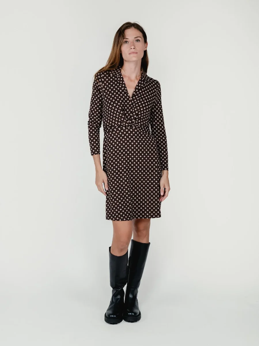 Abito lungo kaki con maniche corte.