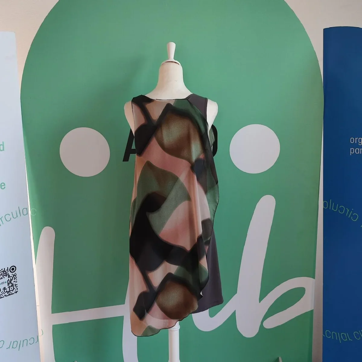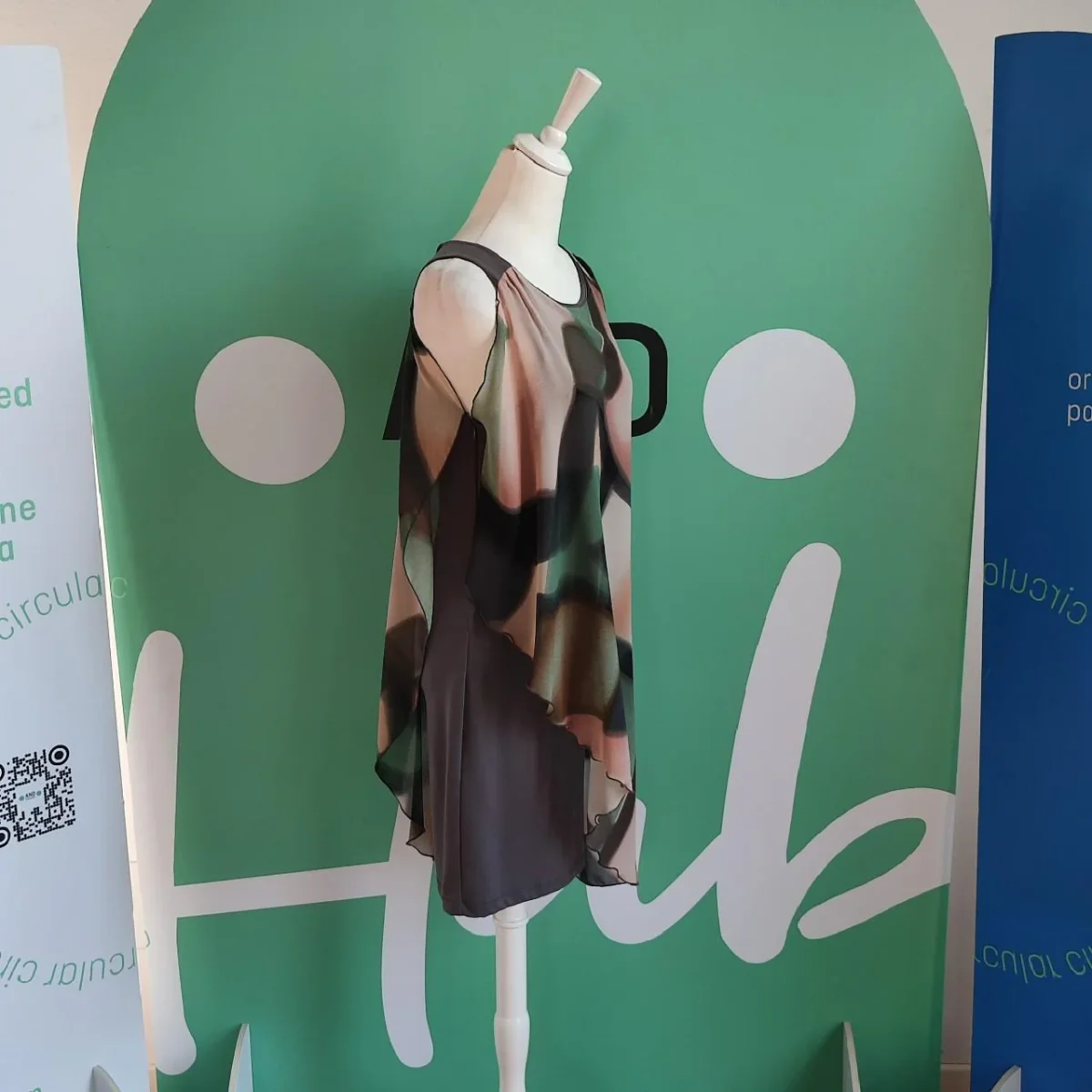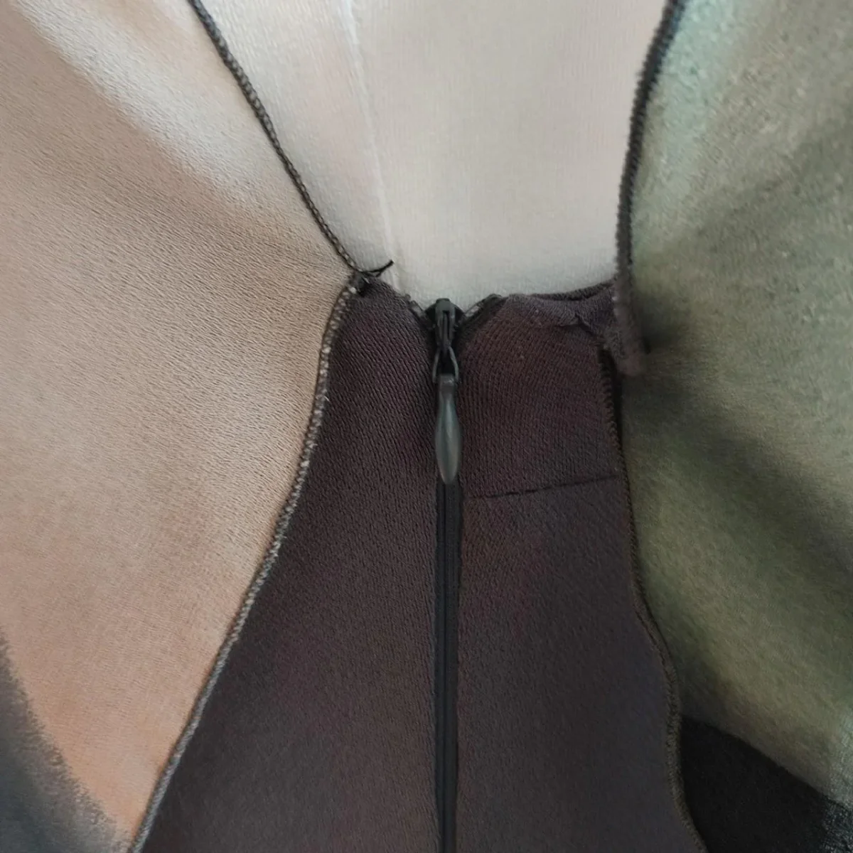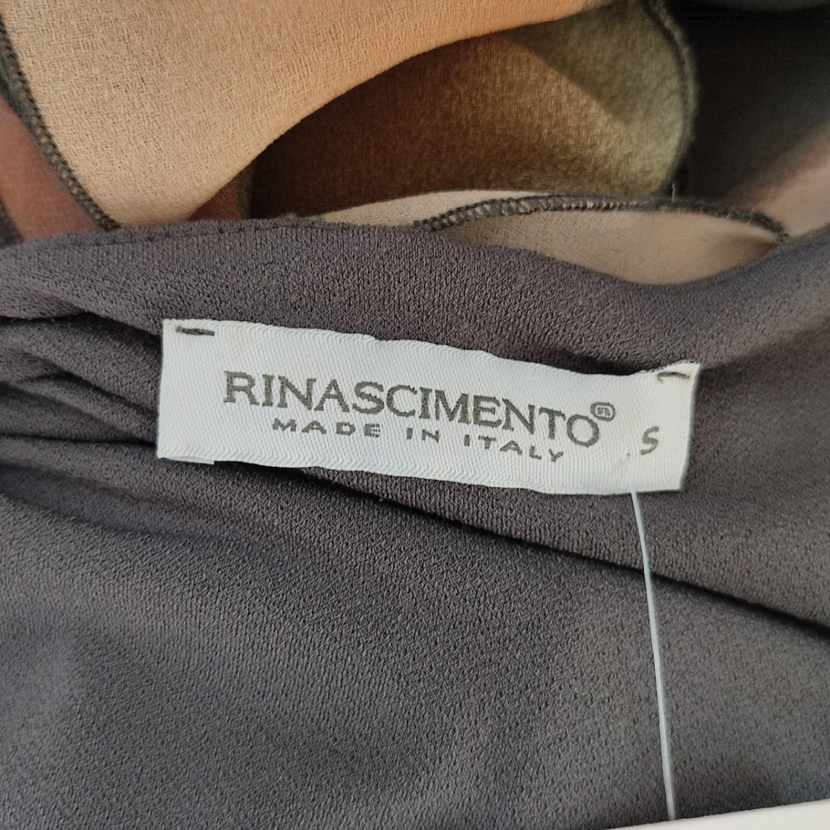 Abito Rinascimento, tg S, tubino grigio, secondo strato semi trasparente multicolore va a coprire per intero l abito , aperto su un lato con volant in diagonale. Chiusura laterale con zip, in poliestere, condizioni ottime.