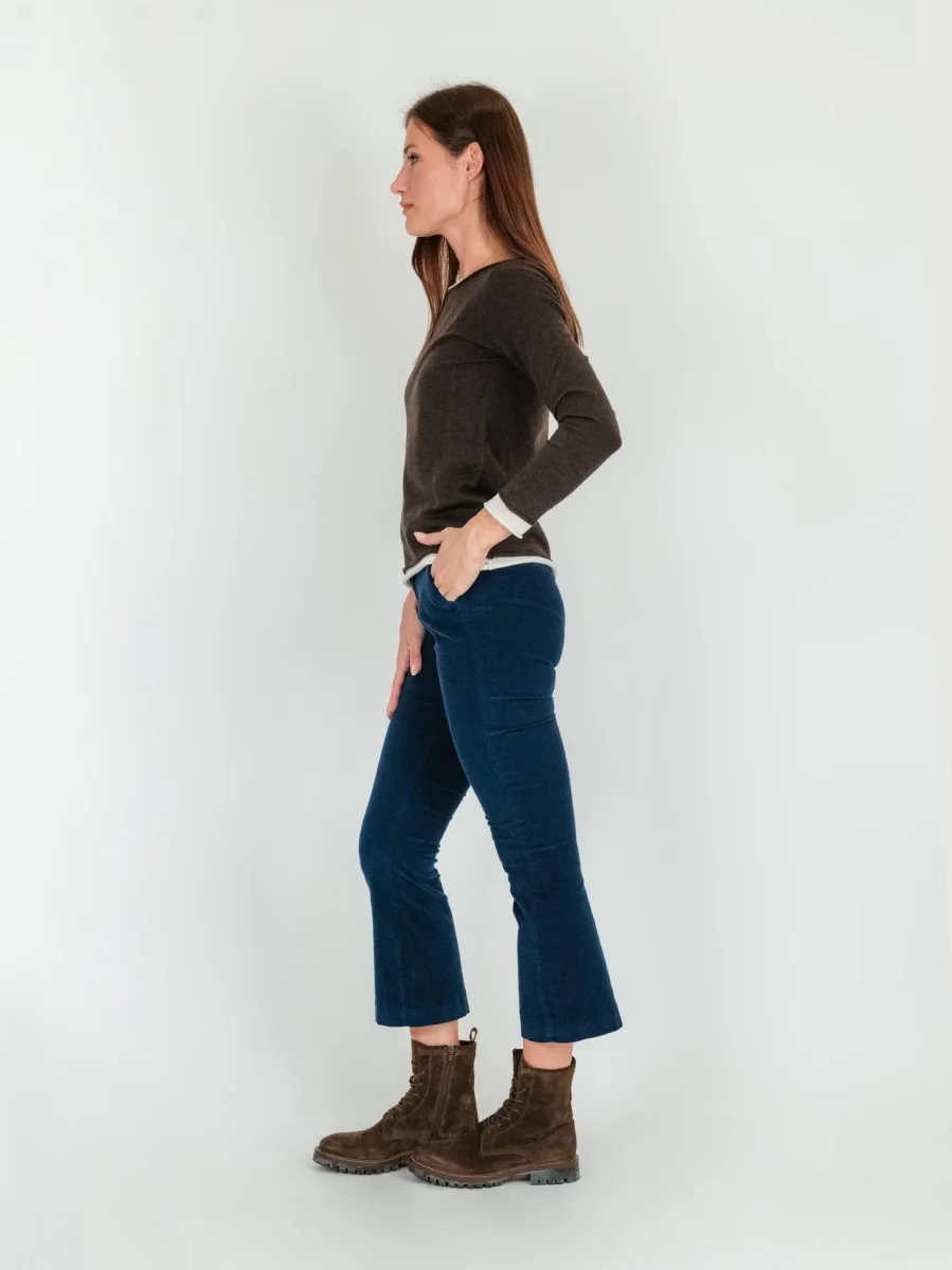 Dettaglio cuciture a vista in tonalità.