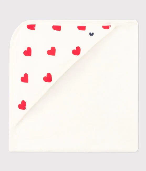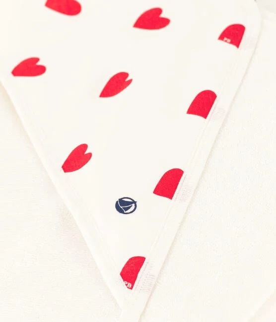 Cappuccio con stampa a cuori a costine, il tessuto emblematico di Petit Bateau.