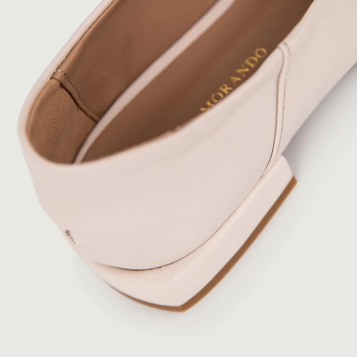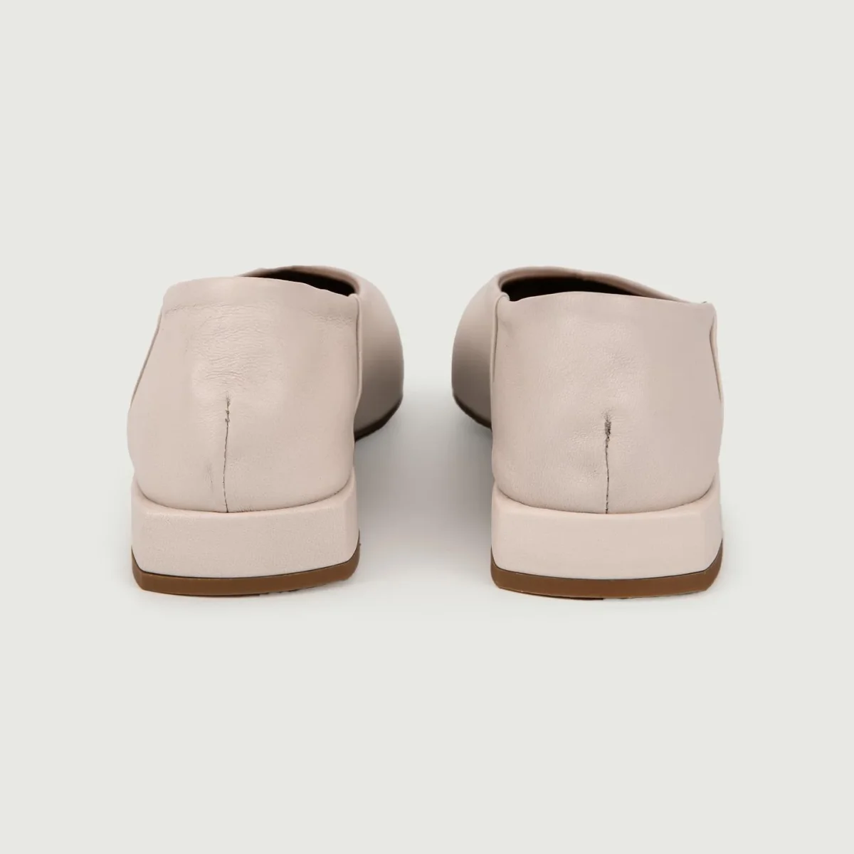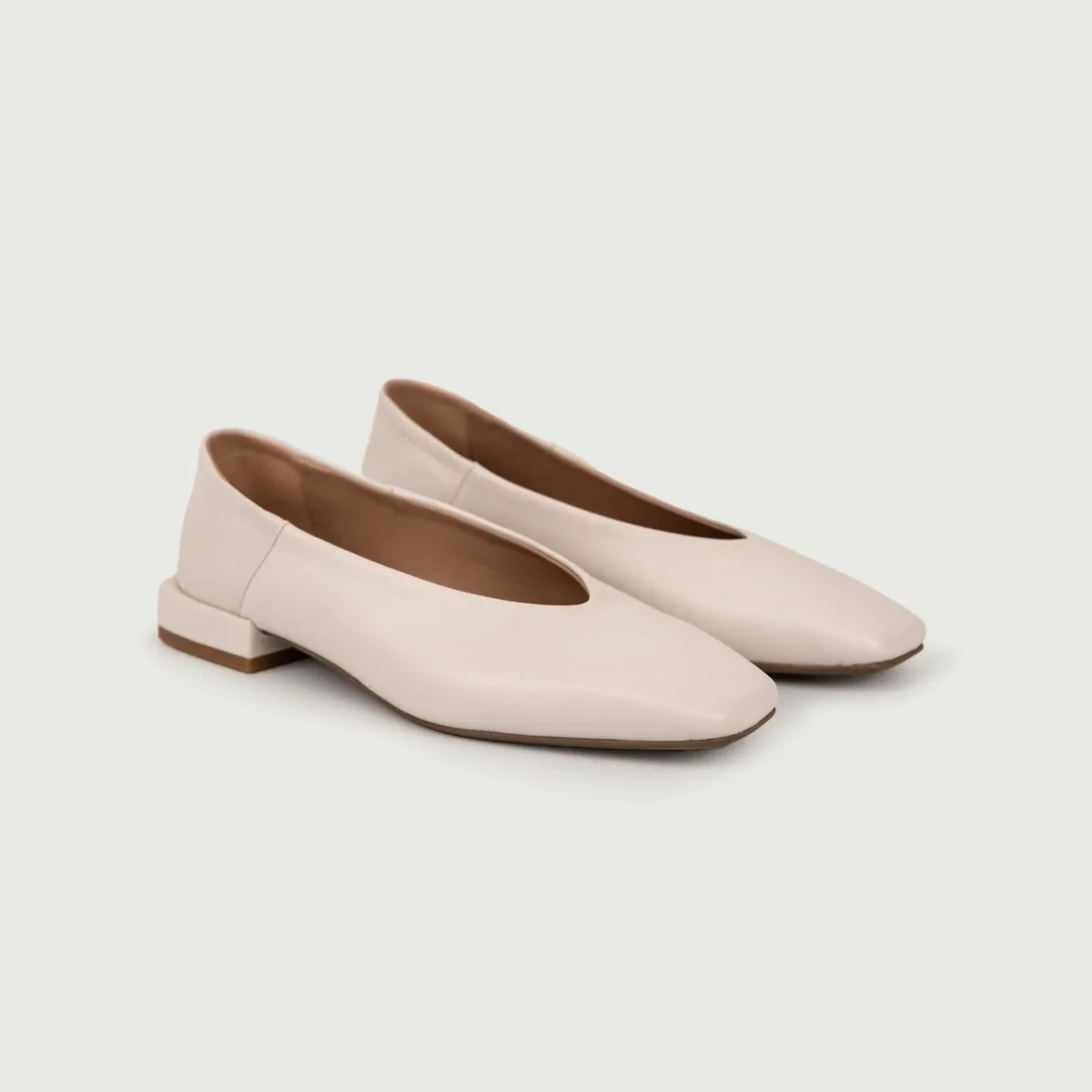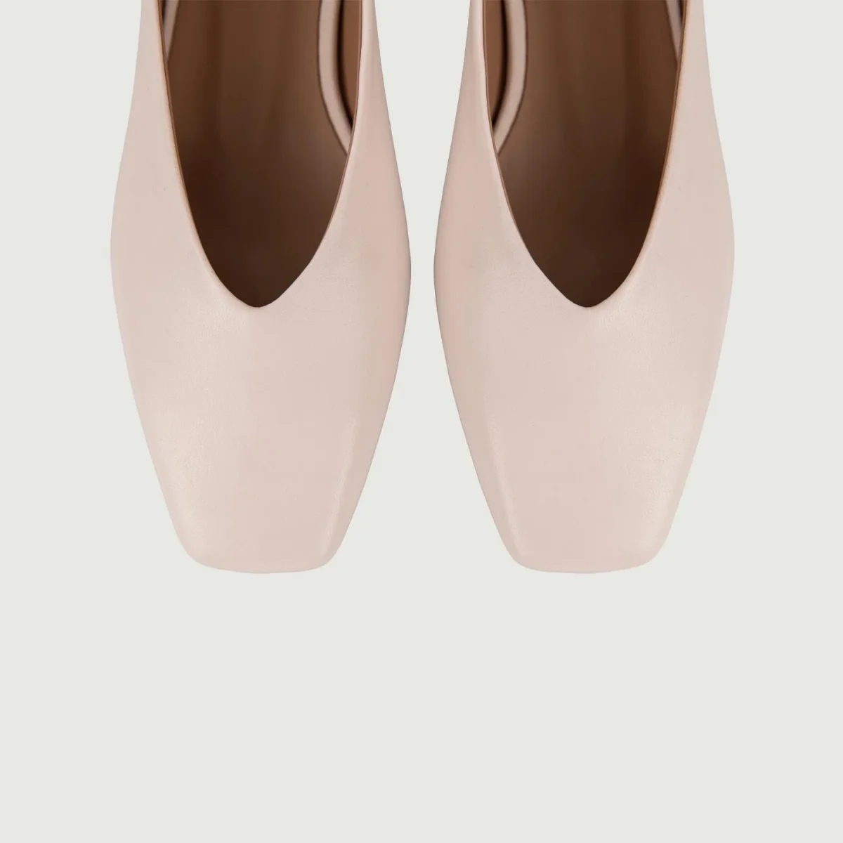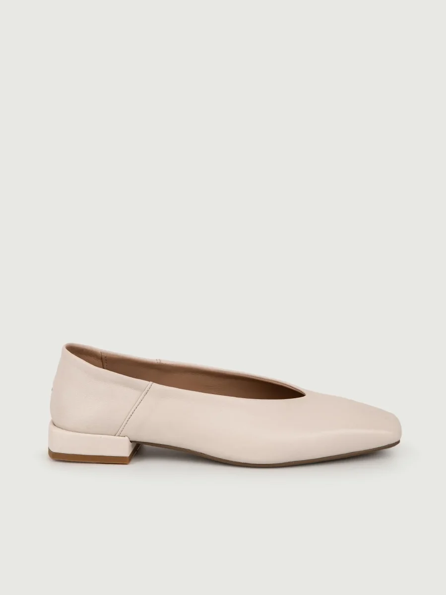 Ballerina color cipria con tacco basso e punta squadrata in pelle.