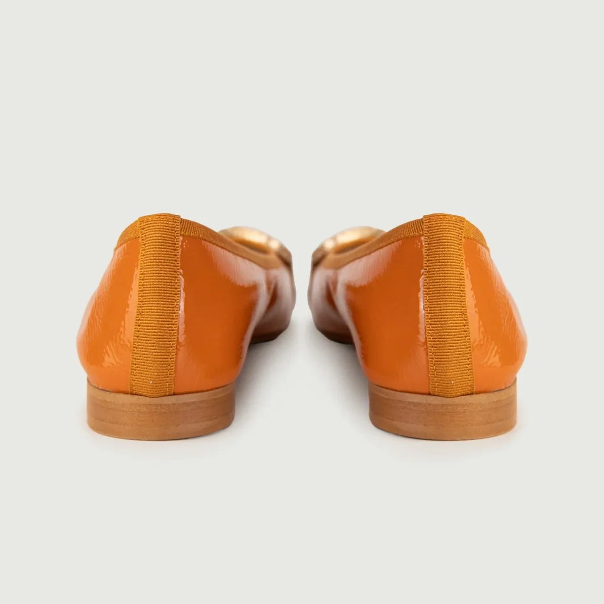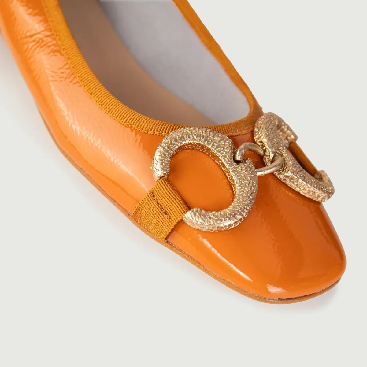 Ballerine in naplak arancio con fibbia frontale doppio anello in metallo dorato.
