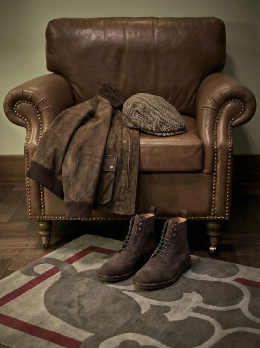 Basco in lana motivo spigato marrone.