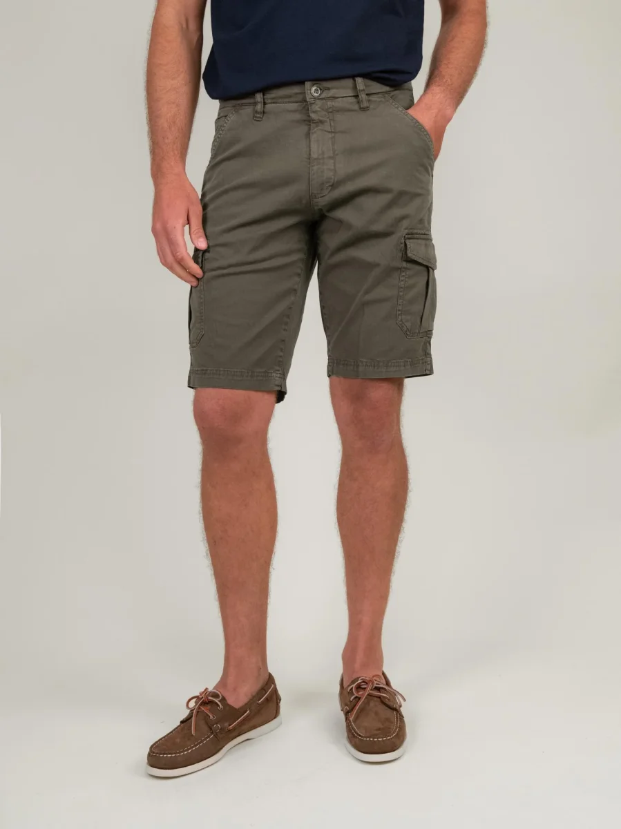 Bermuda in cotone a righe bianche e azzurre.
