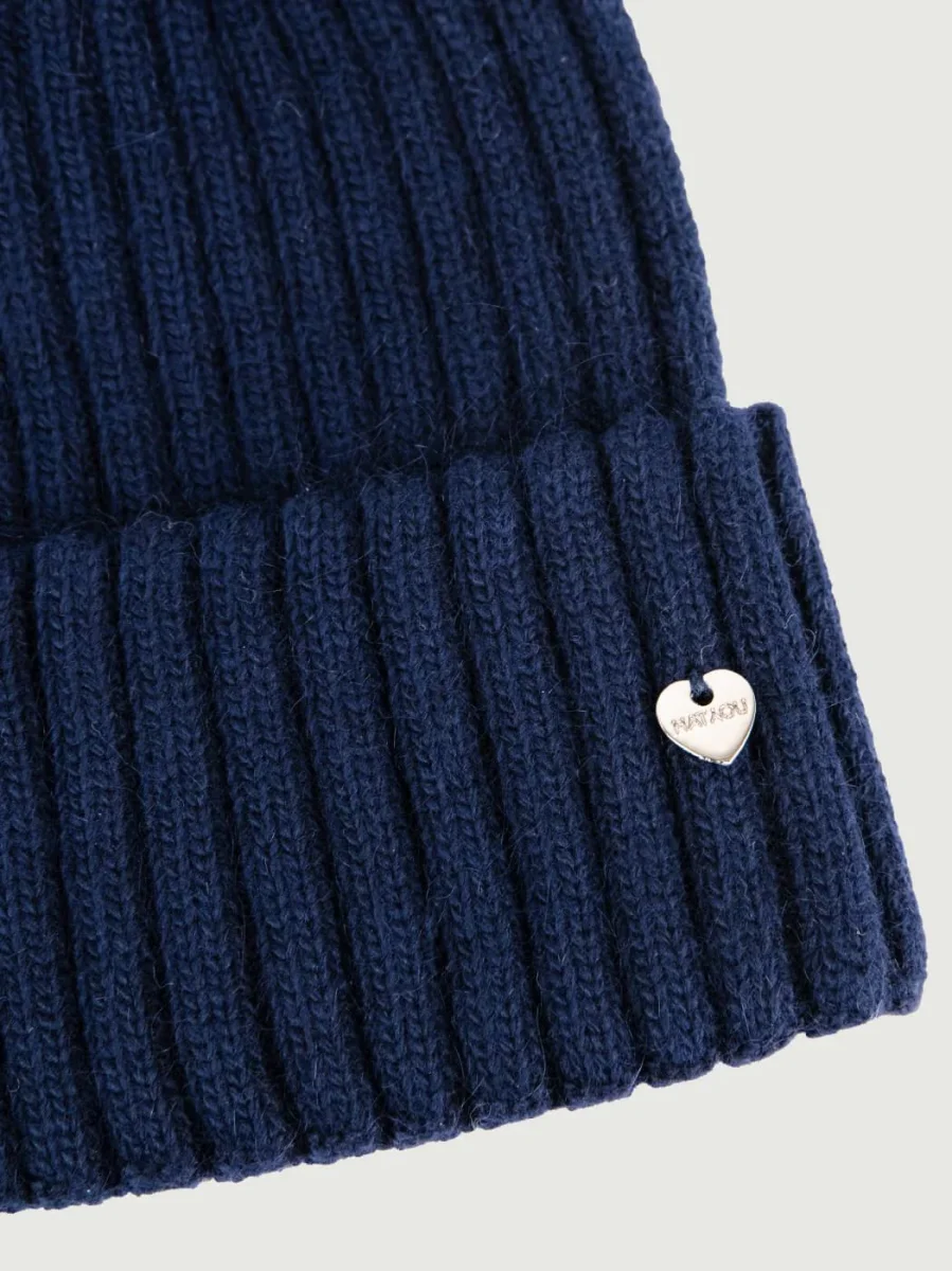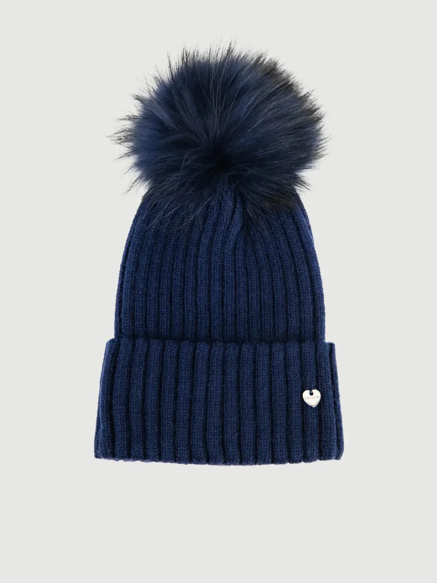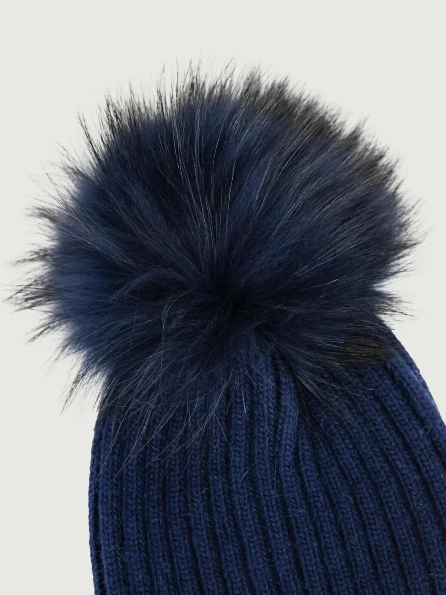 Berretto a coste con risvolto e maxi pom pom in tonalità.