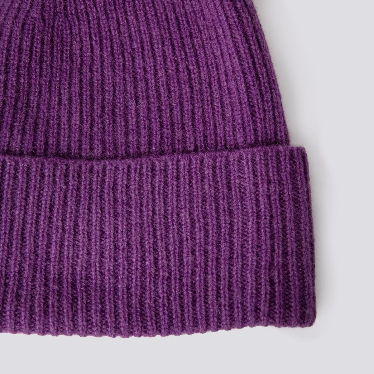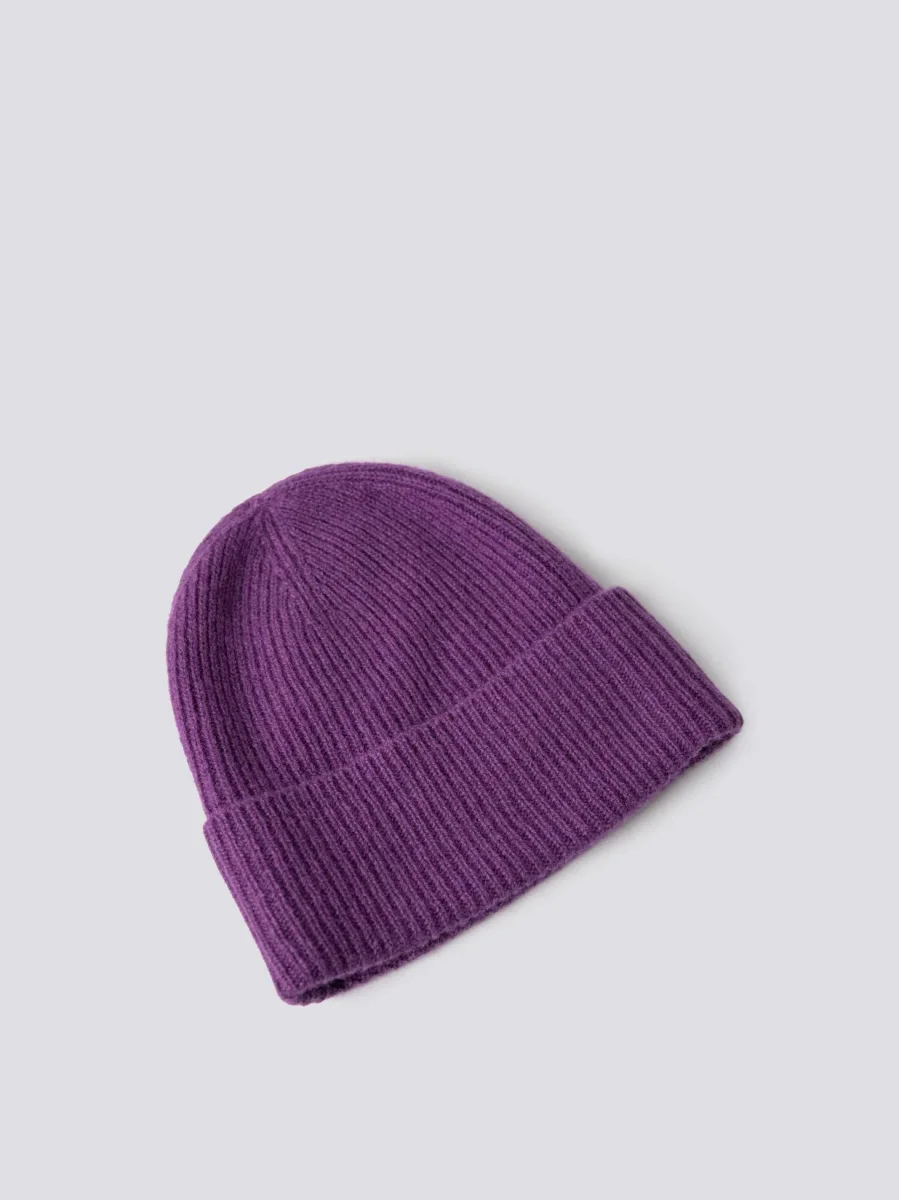 Berretto a coste 100% cashmere color viola. Presenta uno spessore che garantisce calore confortevole, le coste regalano un look casual ed è realizzato in cashmere per una morbidezza assoluta.