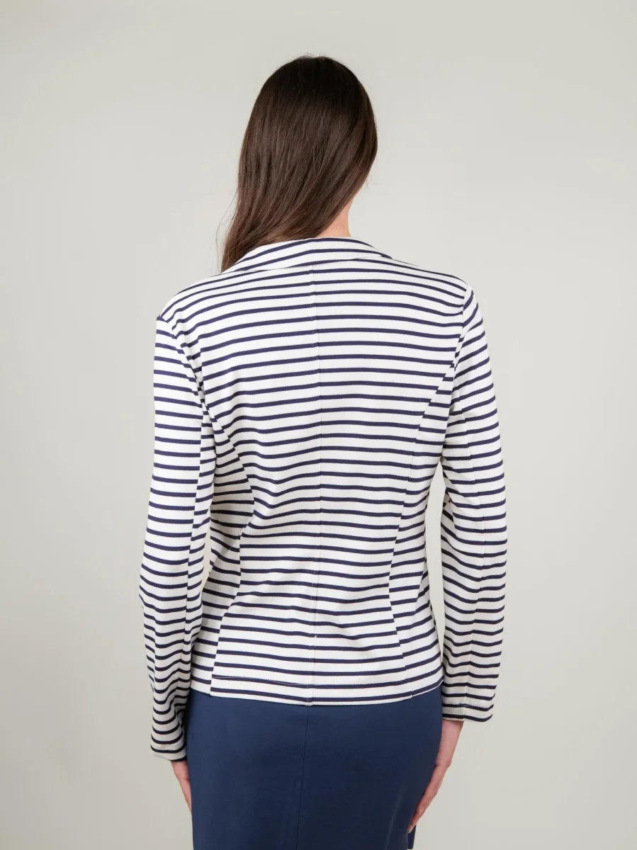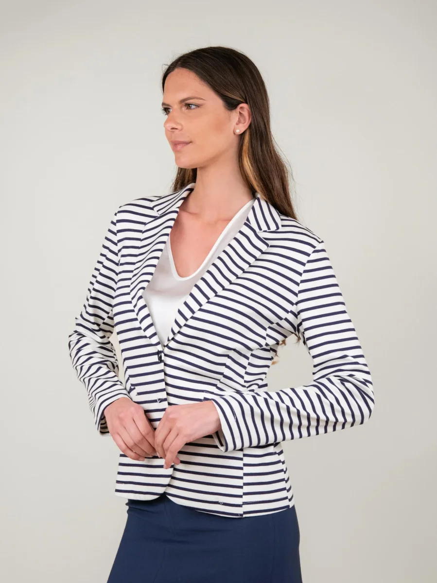 Blazer bianco a righe blu.