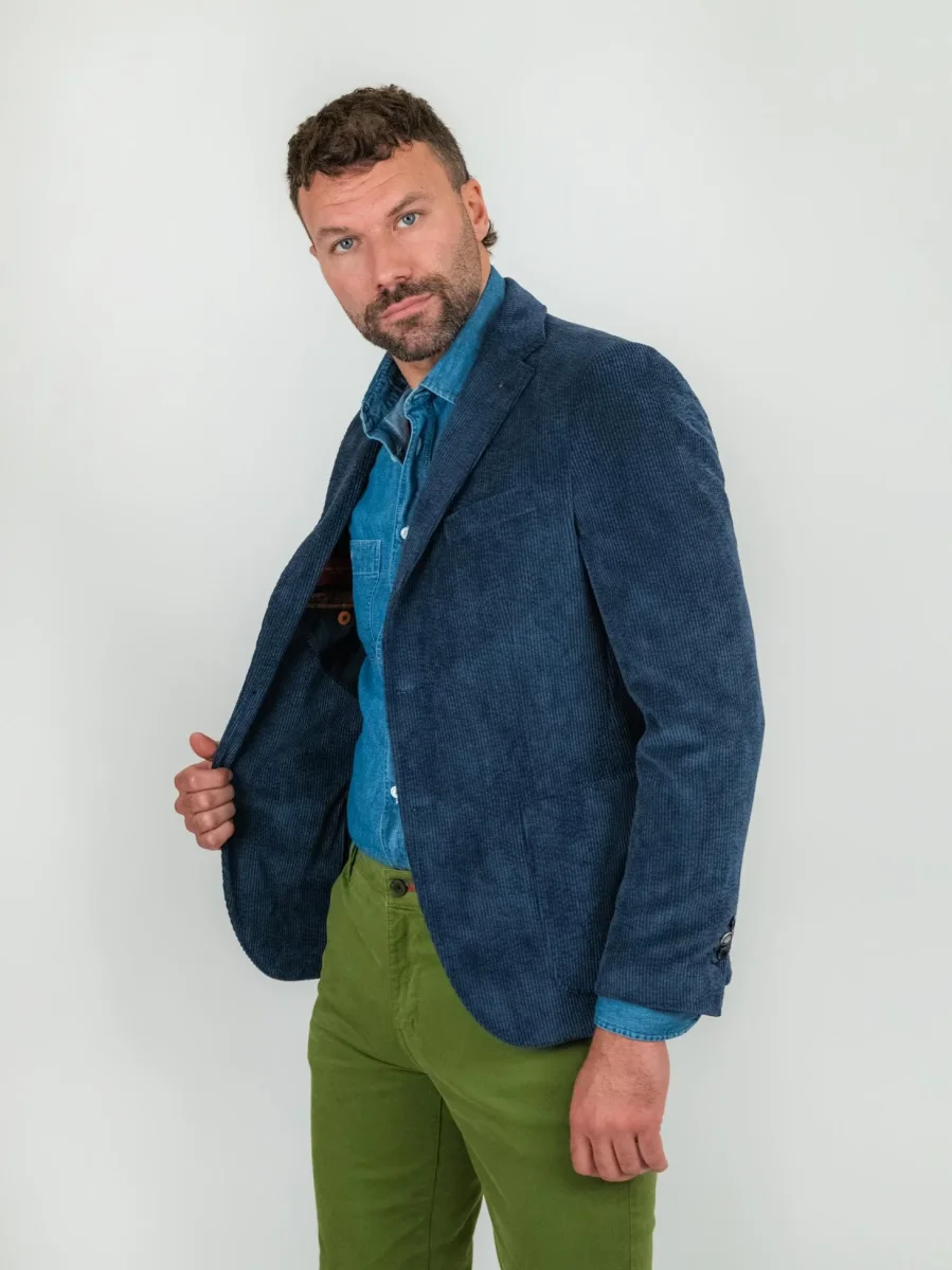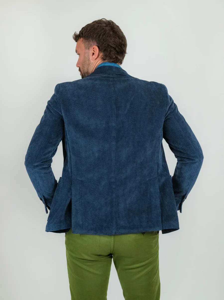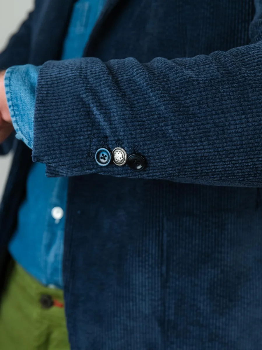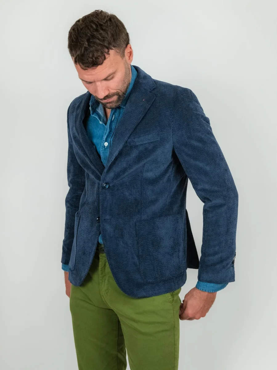 Dettaglio taschino, tasche applicate e bottoni in tonalità.