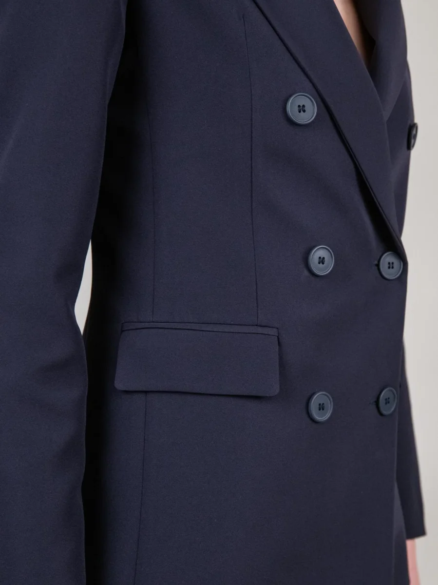 Dettaglio bottoni in tonalità sulla parte frontale e su entrambi i polsi.