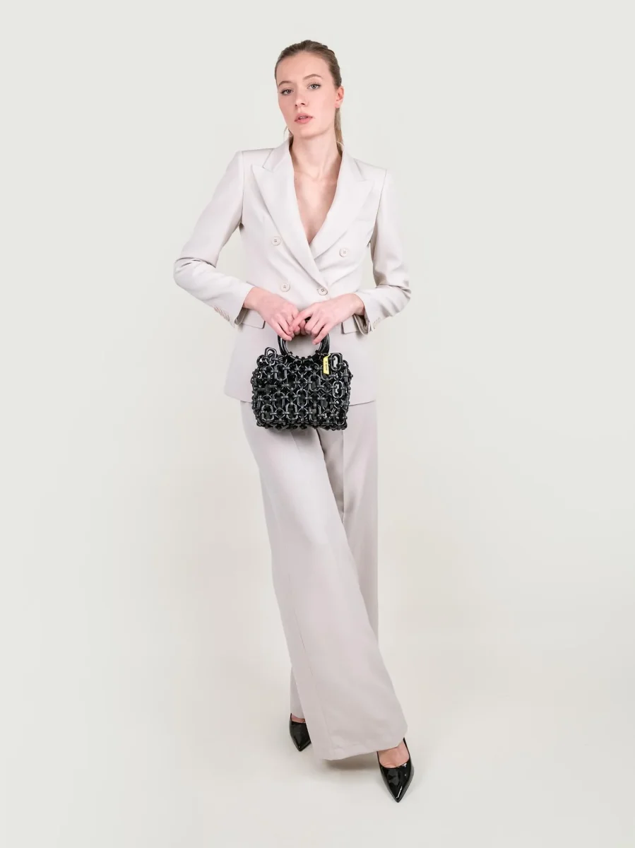Blazer doppiopetto in tessuto panna.
